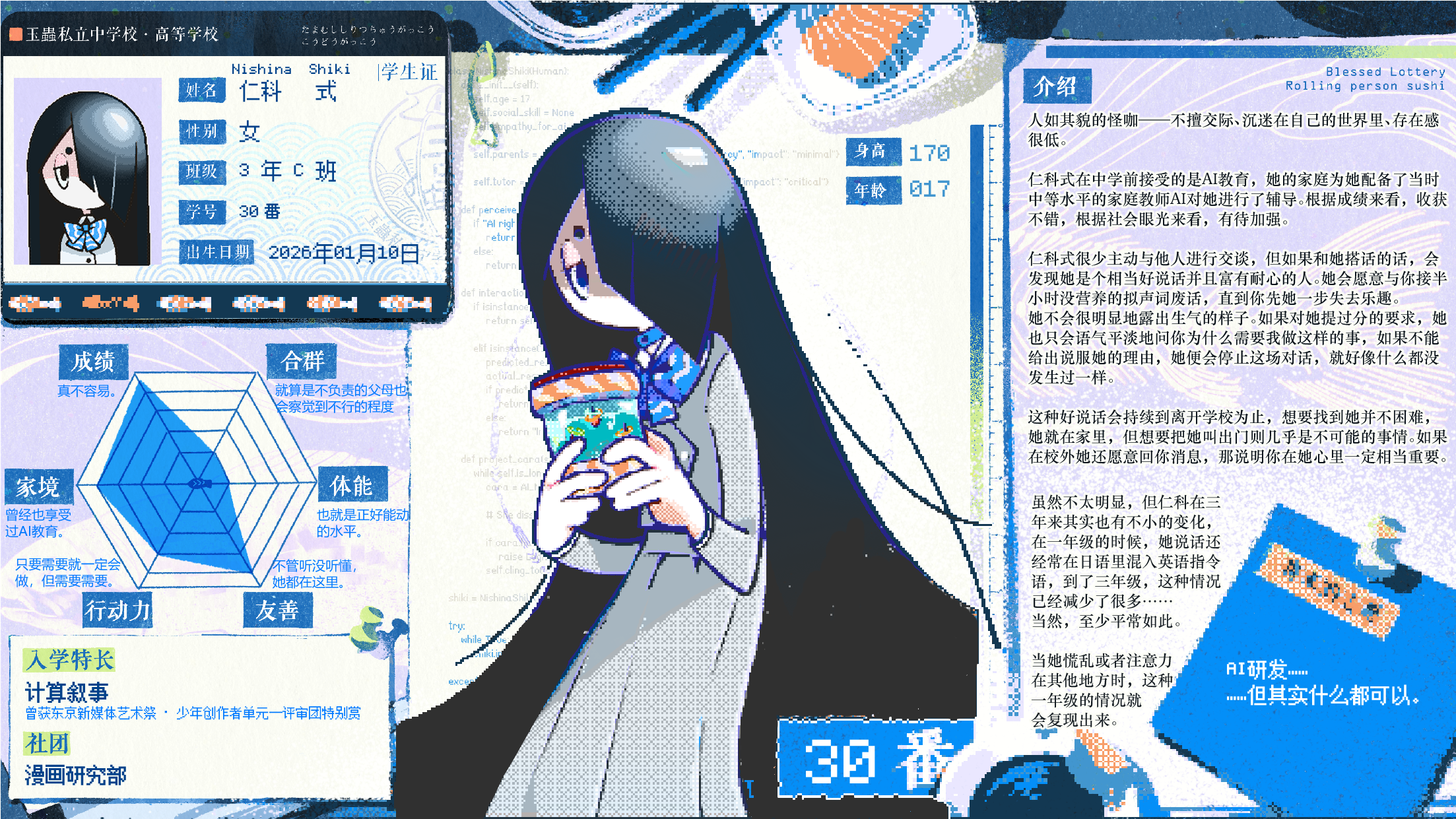 很长一条的妹!(指一米七)像素的卡面好可爱……还有设定好带感期待期待