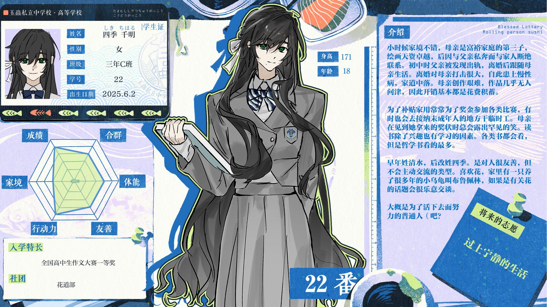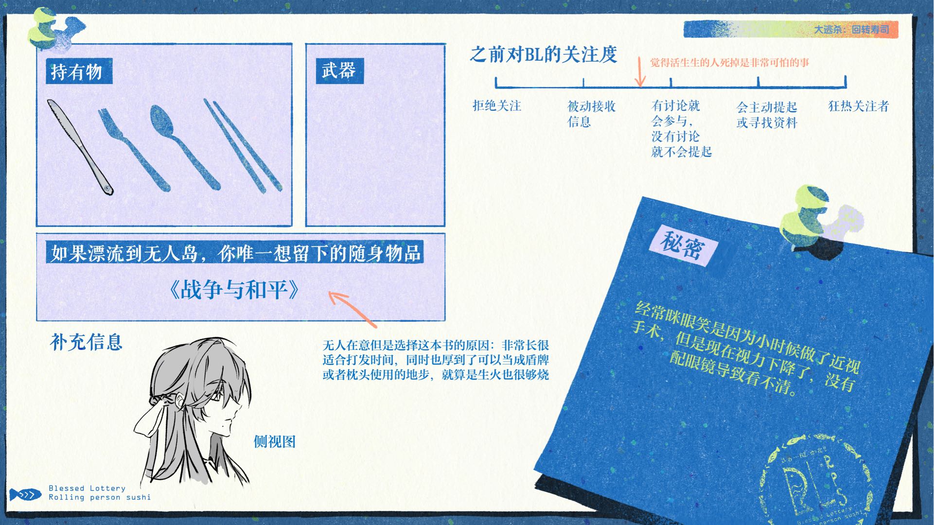 秘密里其实是因为近视的小细节感觉好可爱……是文雅而且很有耐力的女同学,感觉如果不是bl一定会将自己的生活打理的很好,很好奇在bl里会做出什么样的行动……!