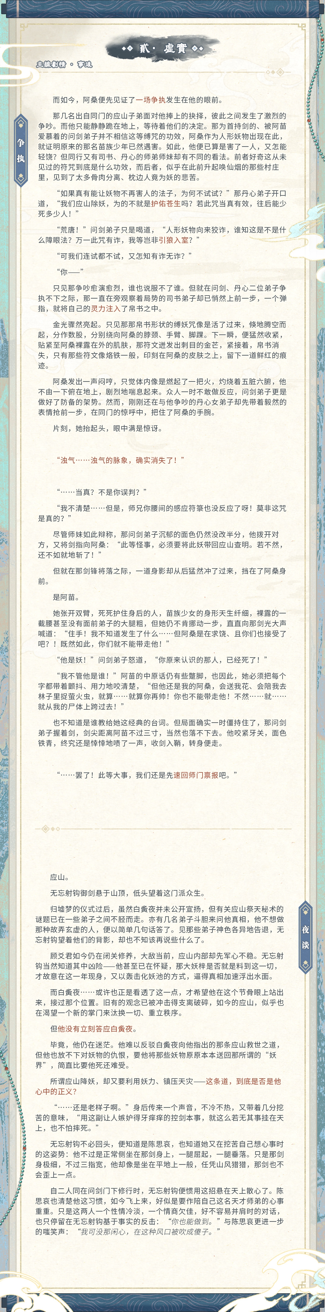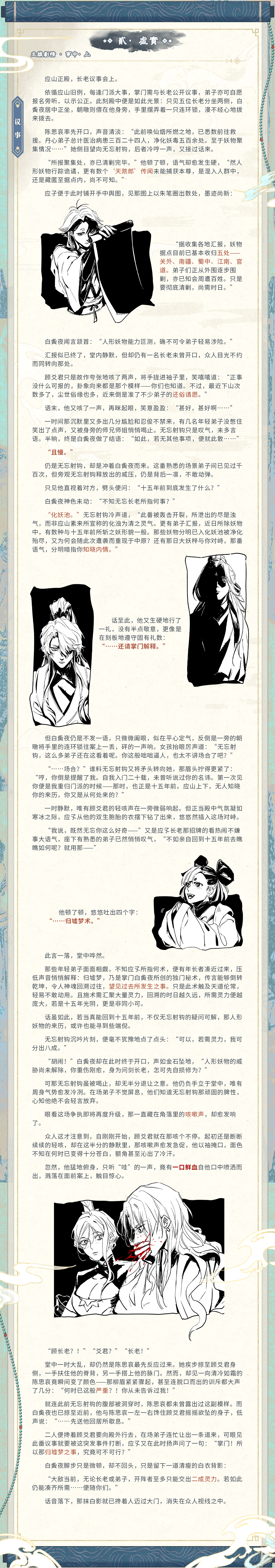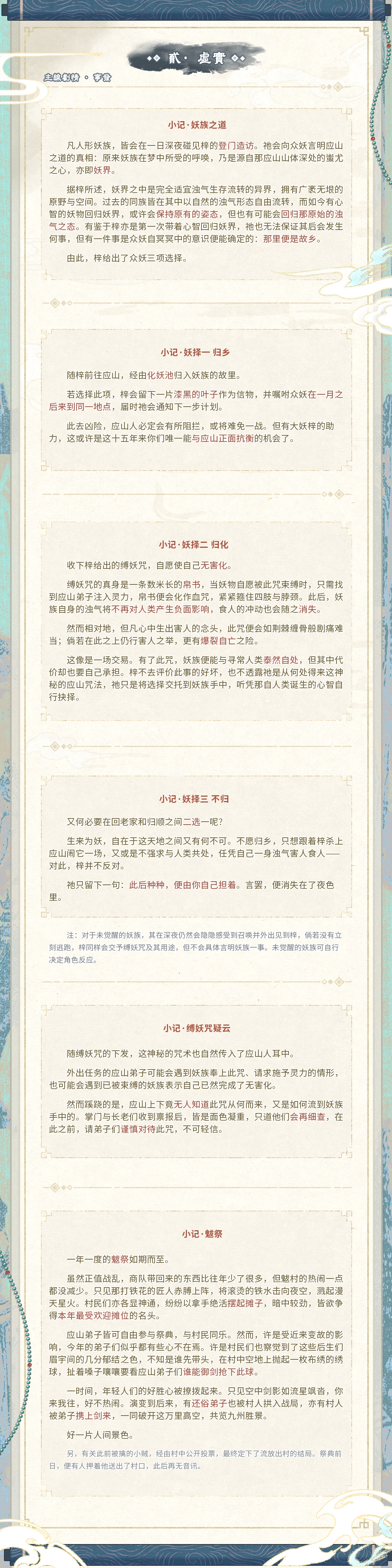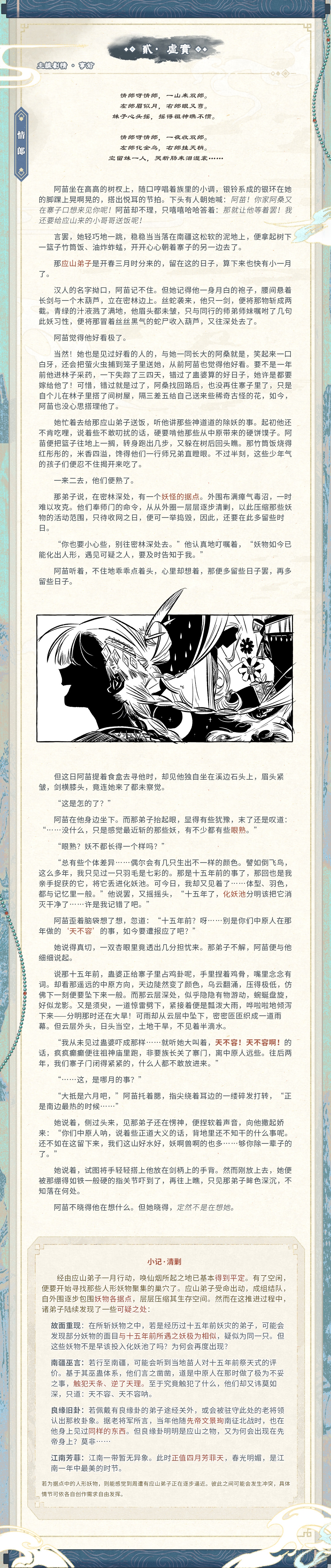 staff表: 主笔&排版:NPC无忘射钩 插图·会议:NPC顾爻君 插图·仪式:NPC梓 插图·情郎/夜谈:NPC陈思哀