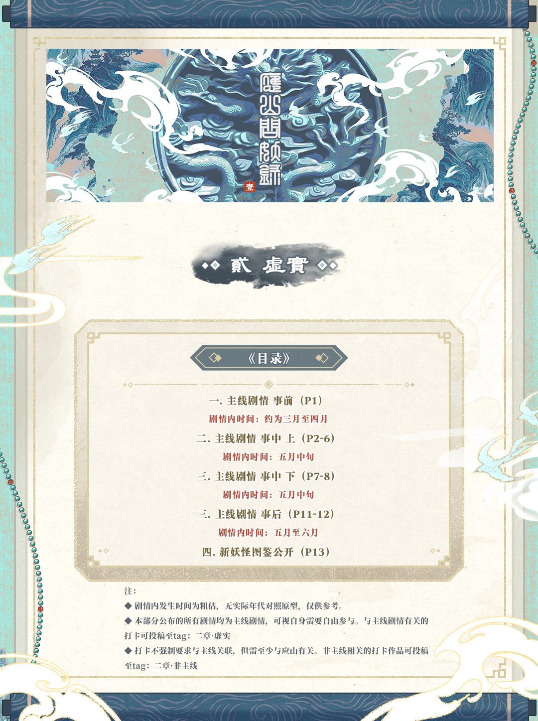 相关打卡请关联相应章节标签,多开角色需分别投递一篇作品,本章开始妖族也需要打卡。