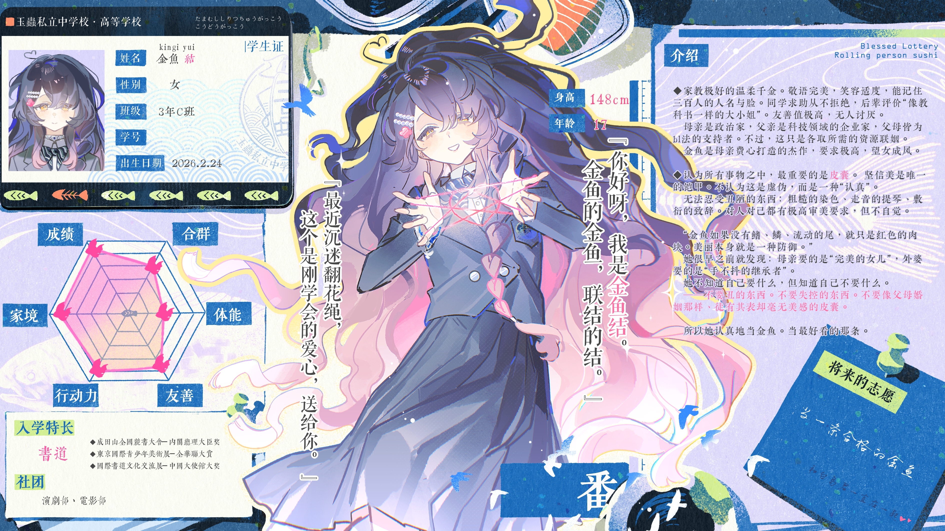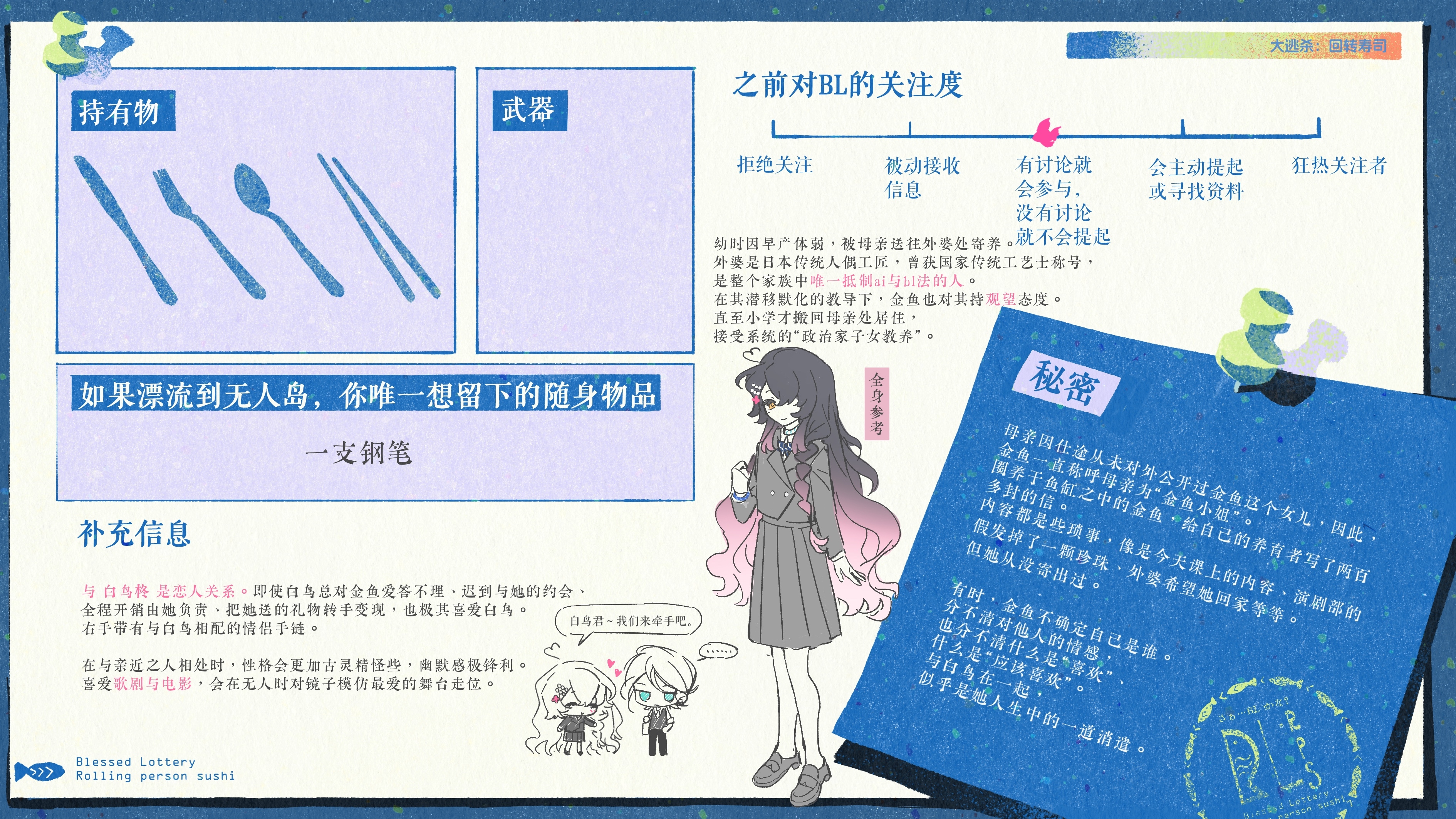 金鱼好可爱…从人设纸字里行间感受金鱼的bl之旅将会充满张力(在说什么)还收闺闺吗我要听恋爱故事