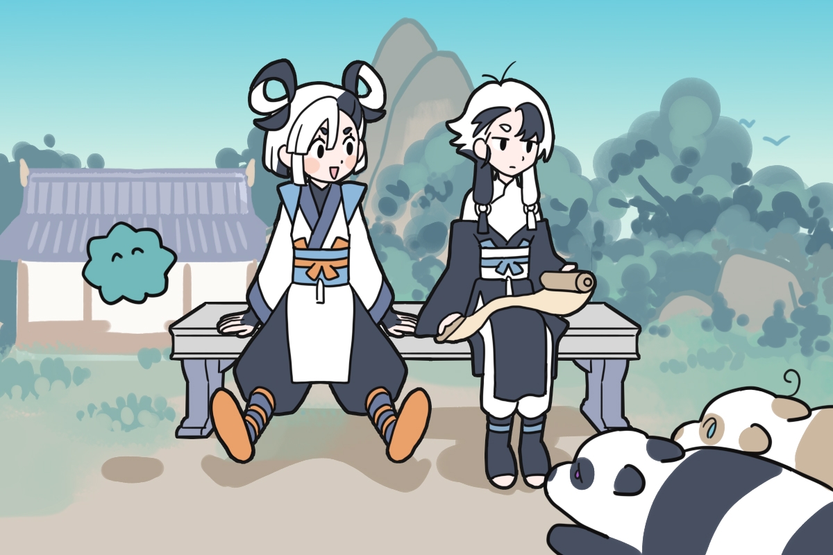 这,是山上的仙女;这,是村头的狗(?)两边画风迥异得太可爱了先捡一口小师门百合再抢一口狗饭!春晚图也是又美又有梗,不管了啥时候能玩上应山禁区。