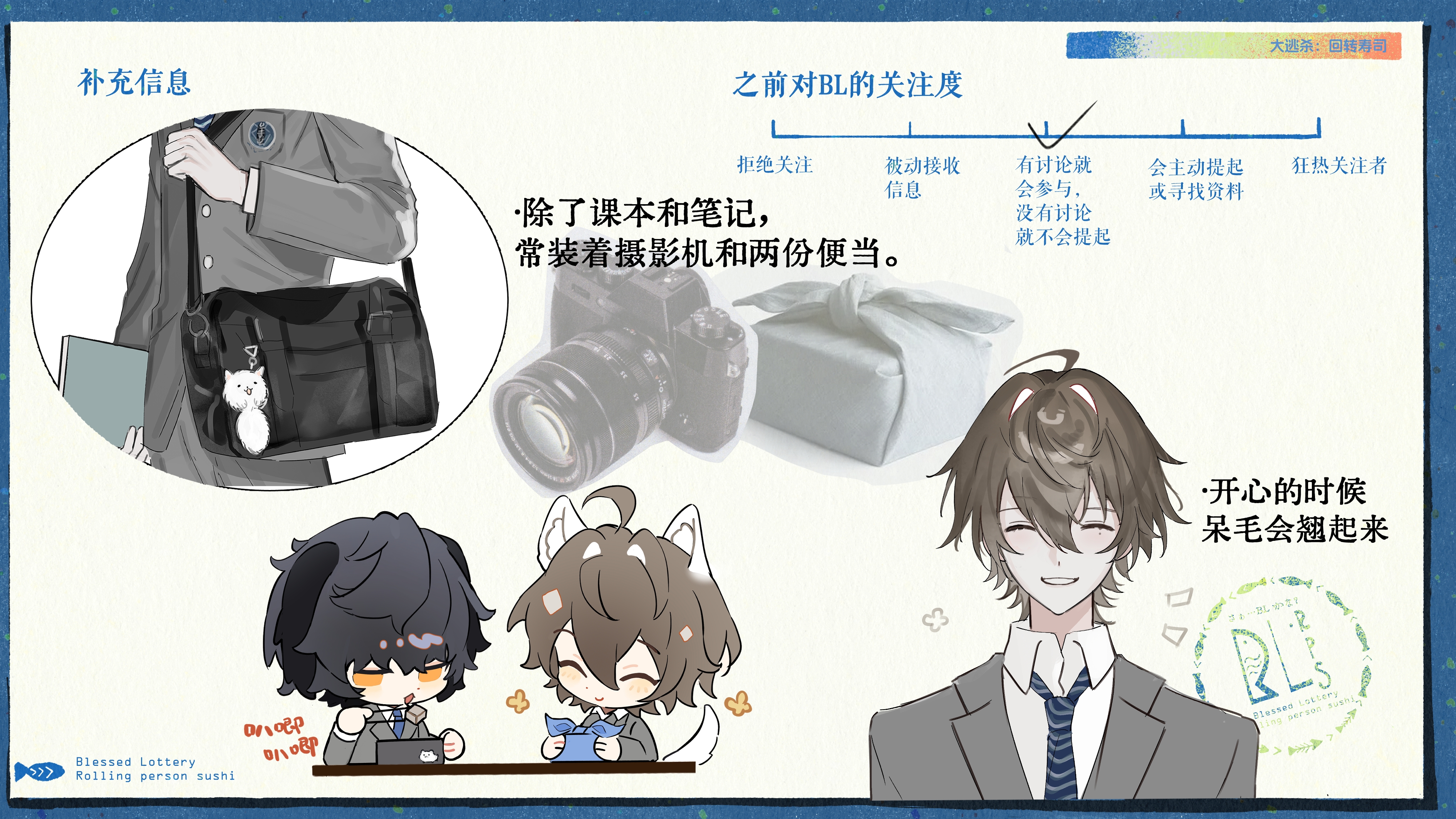 卧槽好美丽的优等生大少爷……挂件好可爱,呆毛好可爱。。。还带便当,好可爱