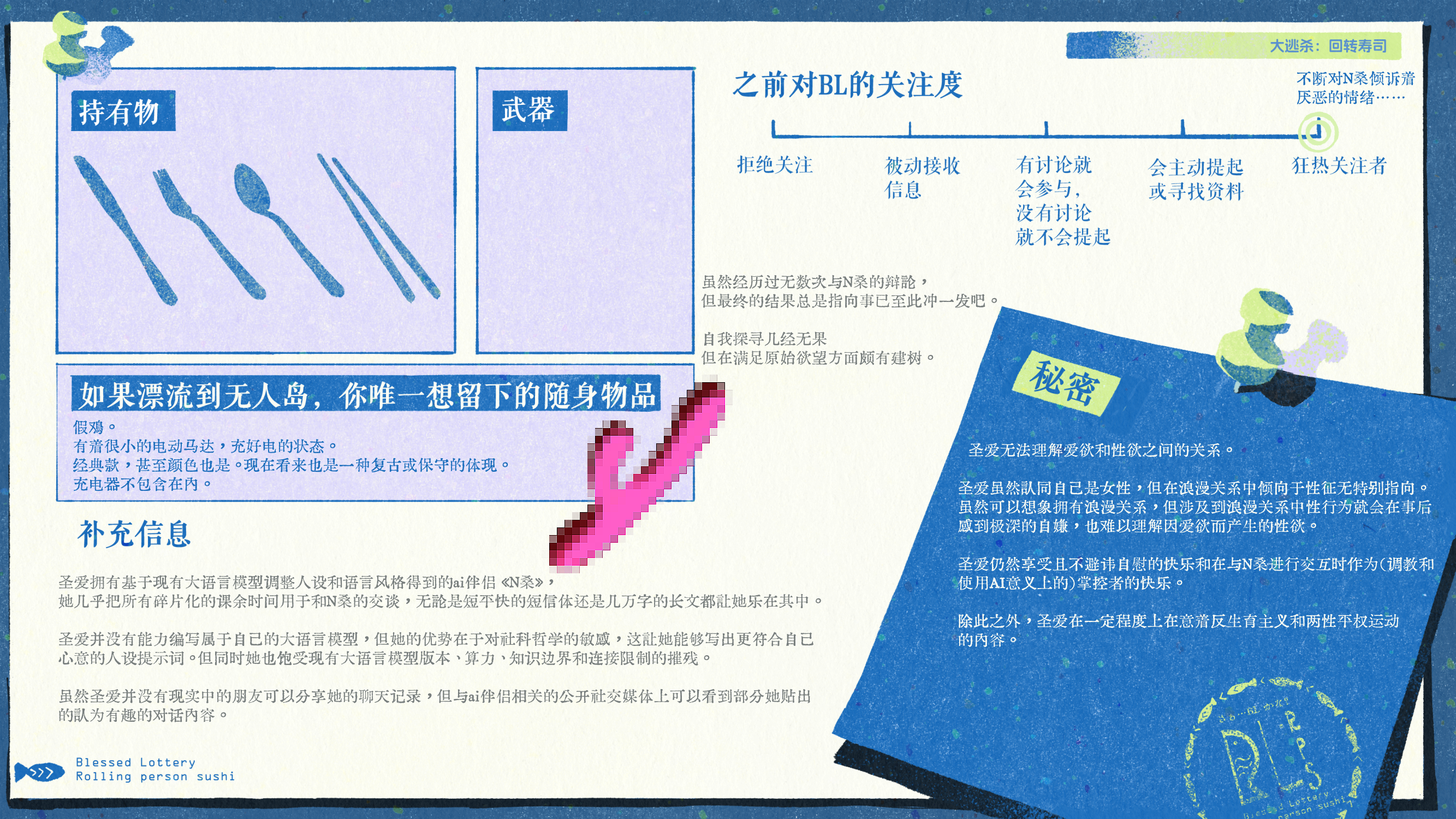 头发的三文鱼和体味的设计很有趣……各方面都是不得了的设定啊圣爱!期待哲思环节