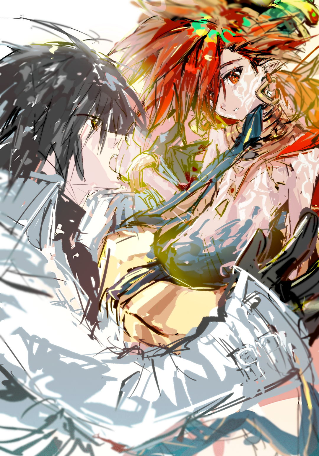 黑毛:初代露奈桑格斯 基本跟杰斯诺是一张脸,因为杰哥停止生长了所以看起来比杰哥成熟一点,头发更长造型更狂野。 露奈桑格斯家最初是克里斯·格雷萨王朝开拓者的血脉。当时大精灵贝尔弗里赫的净化之炎烧尽了从天而降的邪祟,也不可避免地烧毁了人类本就所剩无几的文明,并且祂的净化之炎仍然在持续不断地燃烧(神明的怨念仍然没有熄灭)。人类崇敬祂为火焰与新生之神,但同时也把祂视作带来最后的毁灭的大恶魔而恐惧着。 因此幸存人类的领袖初代露,为了人类的存续,必须要将贝尔封印起来。 当时的贝尔弗里赫才刚诞生,几乎没有自我意识,行动完全受众神怨念的操纵(几乎类似本能的低语,祂自身还没有产生识别和抵抗的意识)。 可能在人类眼里,这确实被视为一种天罚,目的是净化人类的罪孽。但大精灵贝尔不是要“净化人类”,只是众神的怨恨和怒火没有熄灭,祂的火焰只是在燃烧,在烧毁可以烧毁的一切。 贝尔并不怨恨那个封印了祂的人类,祂当时甚至不理解“被封印”的意义,自然也不懂得怨恨是一种什么情绪。露奈桑格斯是第一个朝祂搭话——愿意与祂对话的生物。 封印贝尔的时候,贝尔明白了他想传达给自己的意志,于是把圆环交给了他。接受了这份被众神诅咒的力量的初代露原地变身白毛红瞳男,就此露家世世代代都会出一个能戴戒指的白毛红瞳男(家主资格)。