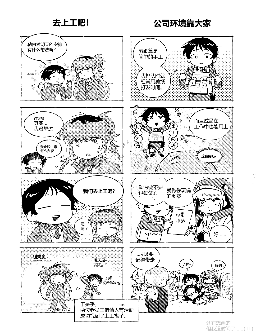 画得还是挺开心的,俩人闲聊这种日常内容。。(意识到基本上只有熟人在看这个账号感觉直接发也没什么) 大面积黑色使用好难……(一大坨颜色丢上去毛手毛脚)
