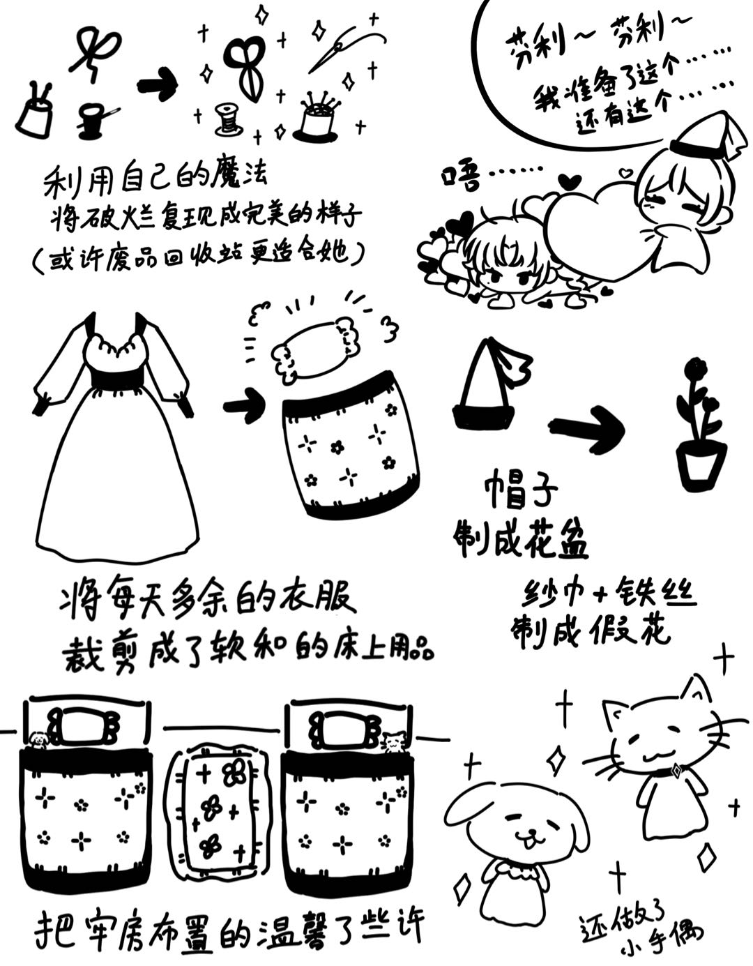 哦哦哦哦原来是这样使用的魔法?!娜西索丝果然是戴着尖尖仙女帽的魔法教母呢~冰冷的牢房也变得温馨起来了!