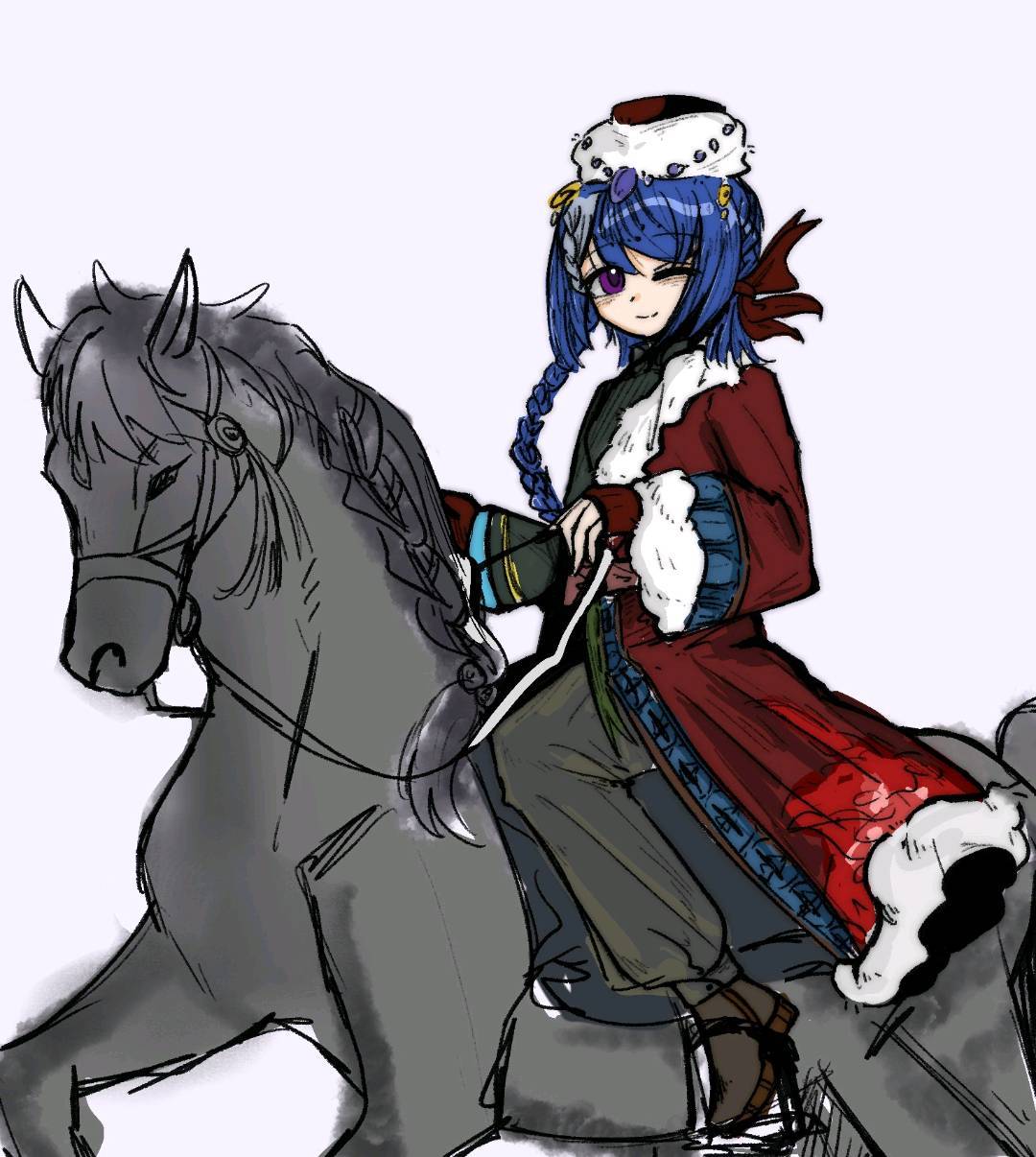 p2是半人马娅娅x (找了个骑马的参考糊了一下……超级简陋的马x) (发现藏式服装和罗娅的挂饰有一点点像画起来好开心)x虽然罗娅是俄国的挂饰)