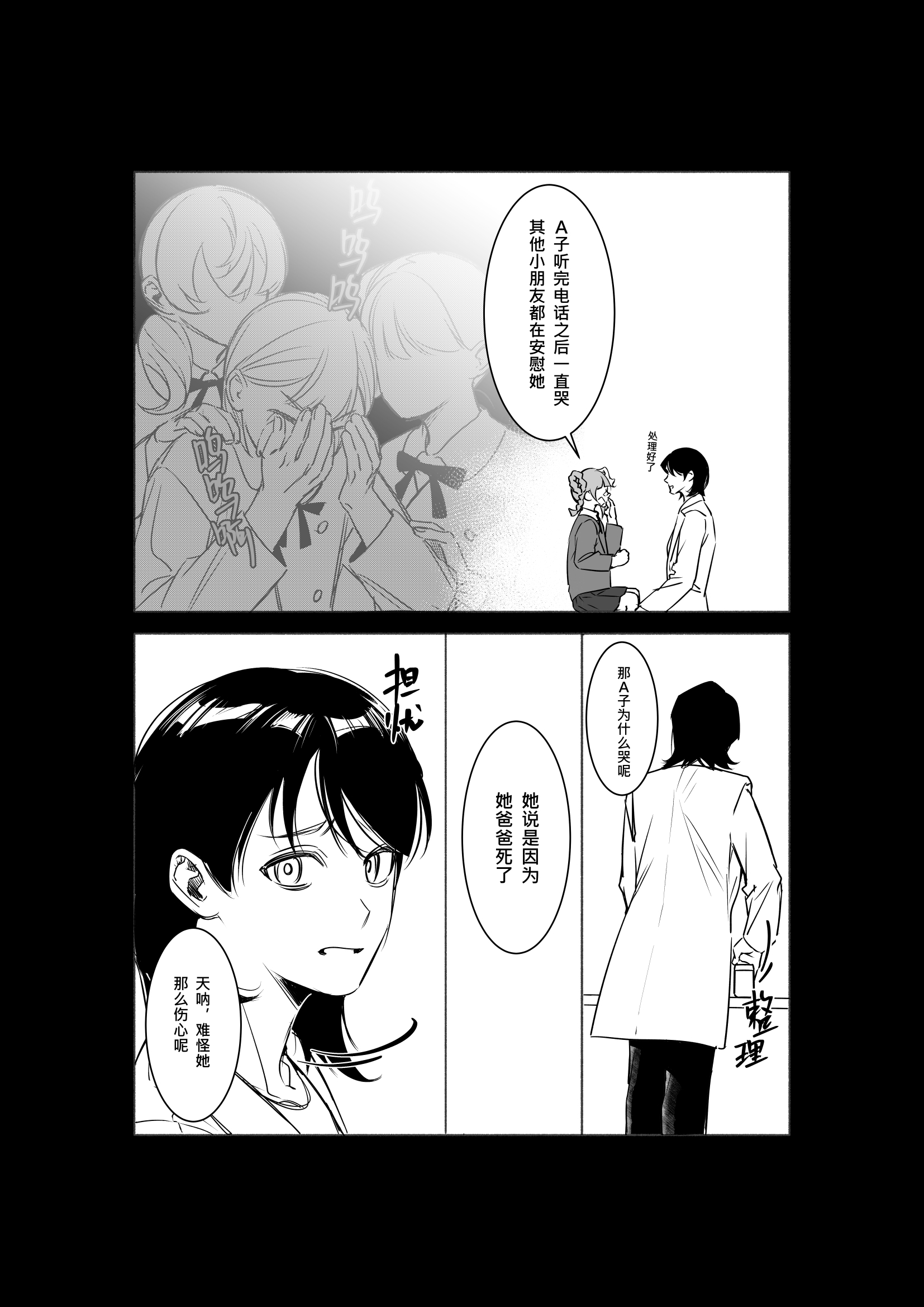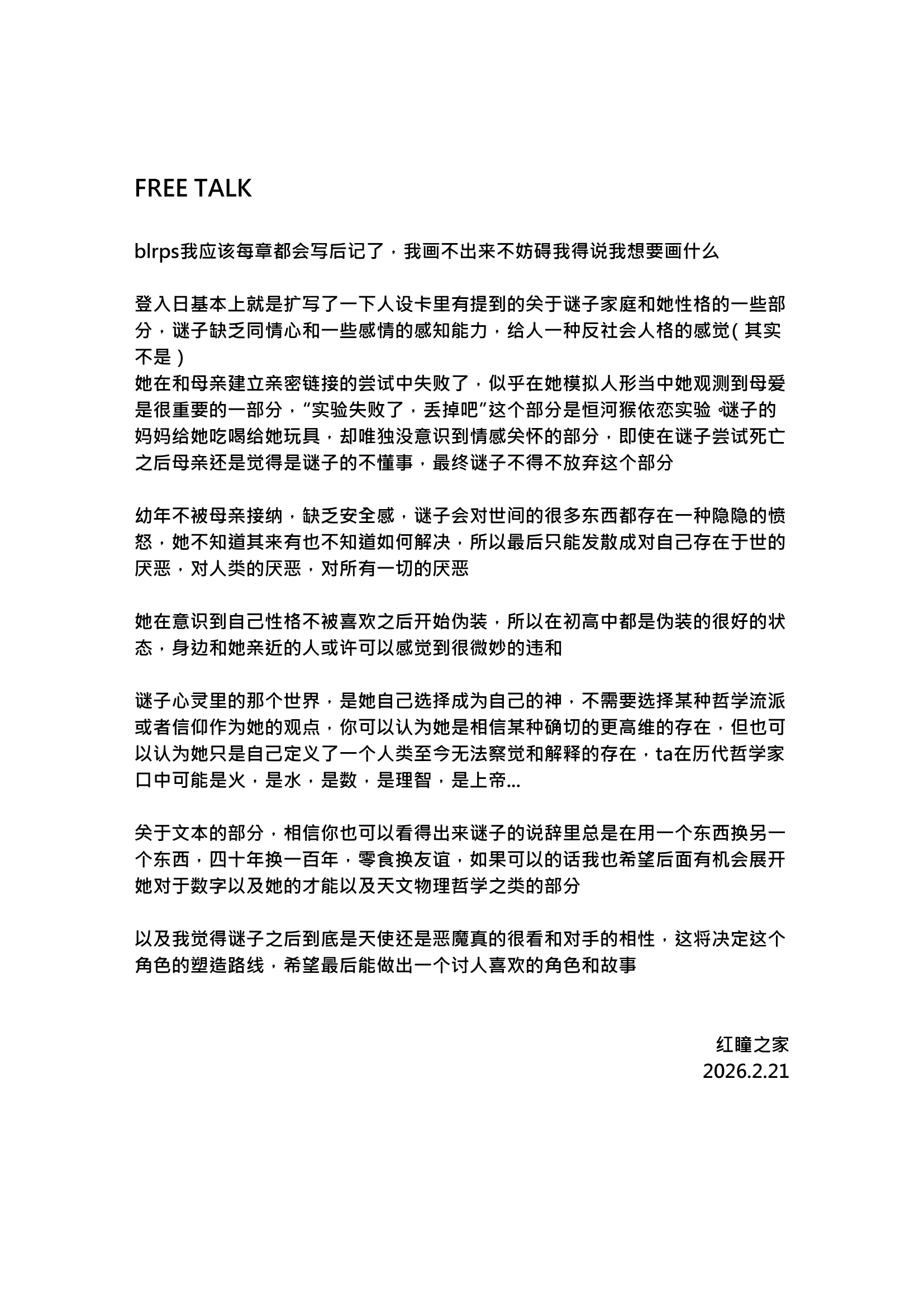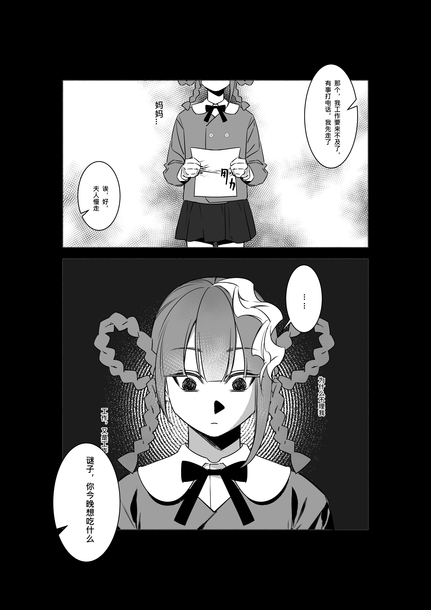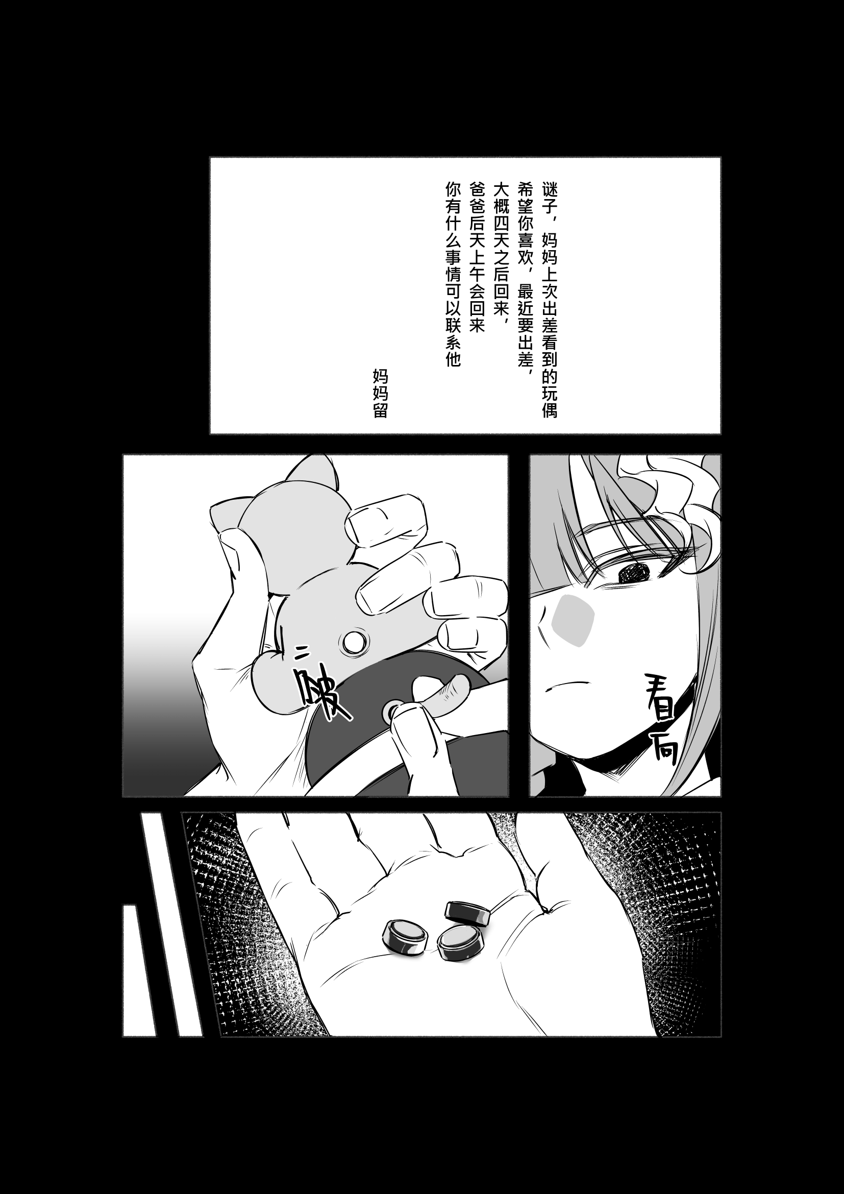 拿着奖状哼歌的小谜子好可爱……就那样不知道是第几次被母亲忽视掉的小孩慢慢变得扭曲,感觉好遗憾;;这样的谜子开始觉得死亡比起活着更值得庆祝,那句"四十年就做到别人一百年的结果"好黑色幽默。。真是有个性的小孩!啊啊……说话带刺难以令人接近的谜子好有魅力。。好喜欢她不屑的表情啊主人能不能也这样看我?!翻白眼然后装可怜的表情也好可爱天呢。。这样的谜子被老师请了家长,可是一直在忽视她的妈妈和从未在漫画里出现的爸爸甚至没有好好问她"是发生了什么吗"、"是不是不开心?",只有斥责、冷眼和继续的冷漠与缺席。哦……妈妈心里还算是有谜子,为她留了礼物,可是似乎妈妈的陪伴才是谜子真正想要的东西吧?吃下了玩具里的电池的谜子躺在医院,面对又一次母亲的责怪冷冷地说出了特别残酷的话……感觉宝宝实际上……或许是很希望得到父母的关注、关心和爱的?那页"实验失败,丢掉吧"的画面,我感受到了想象出这样的情景的谜子内心深处对父母和整体人类深深的失望,而被送入bl的谜子,由于bl本身的残酷性质,她更笃定了这样的结论……令人扼腕……! ft中所说,谜子并非不是真正的反社会人格,只是像,看到这里我好高兴,还有一种微妙的"松了一口气的感觉"。"交换"相关的数字与哲学的话题,感觉超有趣的,好想在后续的展开里看到!最后,我好想遇见你!
