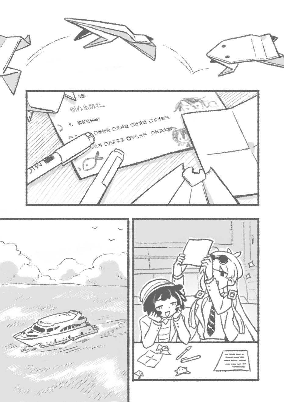 真是擅长折纸的孩子呢。有一种说法,人会对于熟悉的可掌握的东西感觉到安心。就像是银河对于人来说太过于遥远而难以理解,所以人类的语言使用牛奶来代称它。宇曾言同学是在使用折纸,将外物通过自己的理解,转码成可控的存在吗?