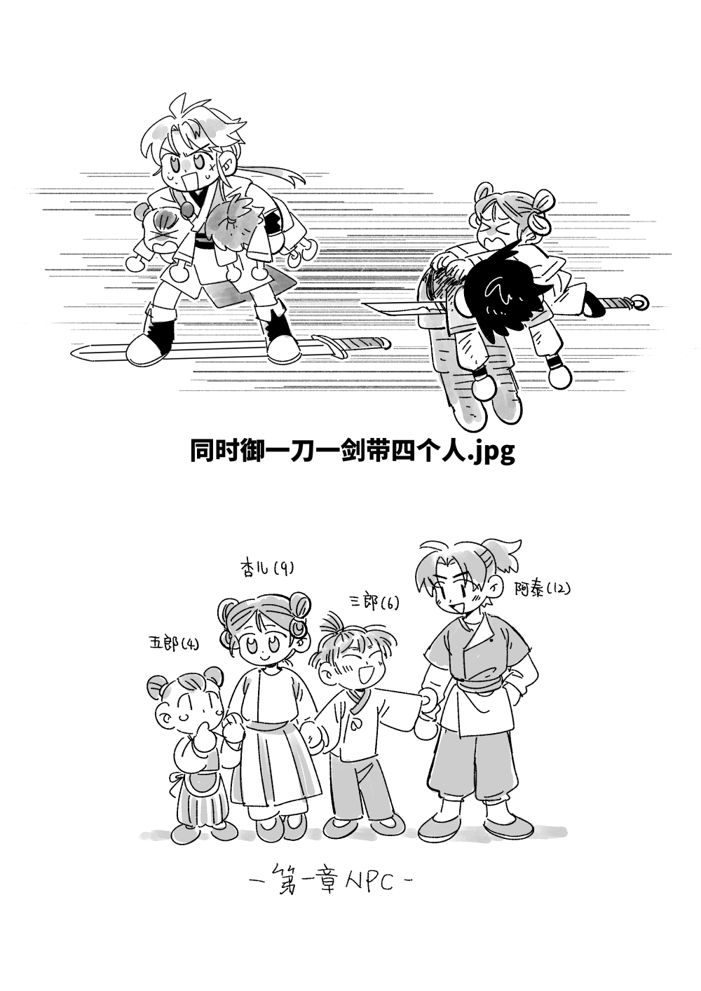 P4 画了角色小时候+村里的小孩