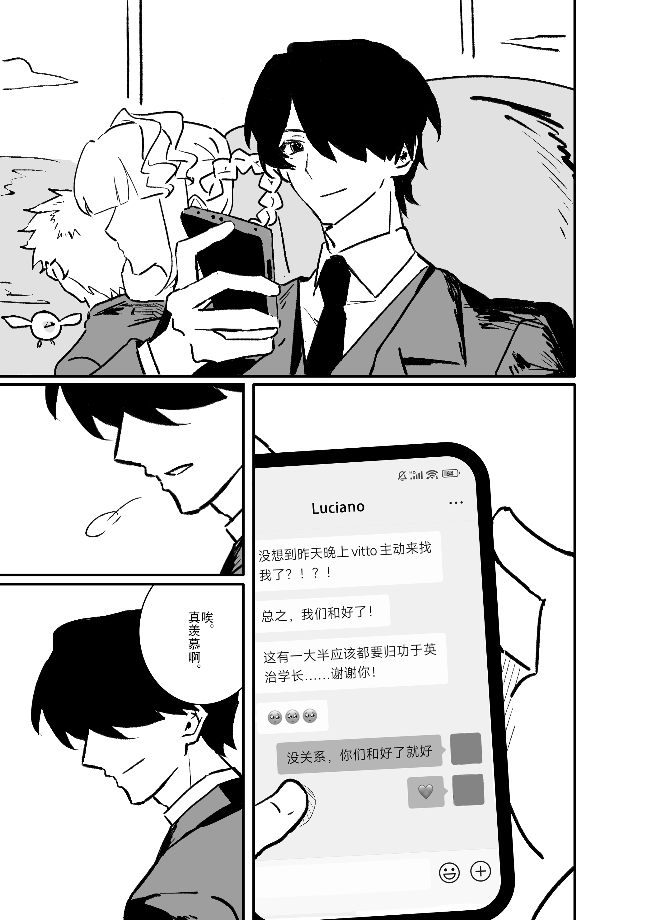 英治好努力的在帮助兄弟和好,人好好?!用发明来构建人与人沟通的桥梁这个点好有意思,虽然看起来是科技发展但其实落点还是在人文关怀上。。用枪(?)指着人家检测出要做心理疏导这个画面在维托看来太像挑衅了笑死我了,哥哥对弟弟唱歌最后两个人一起走夜路谈心好萌啊,骨科好萌呀偶呵呵呵呵~~