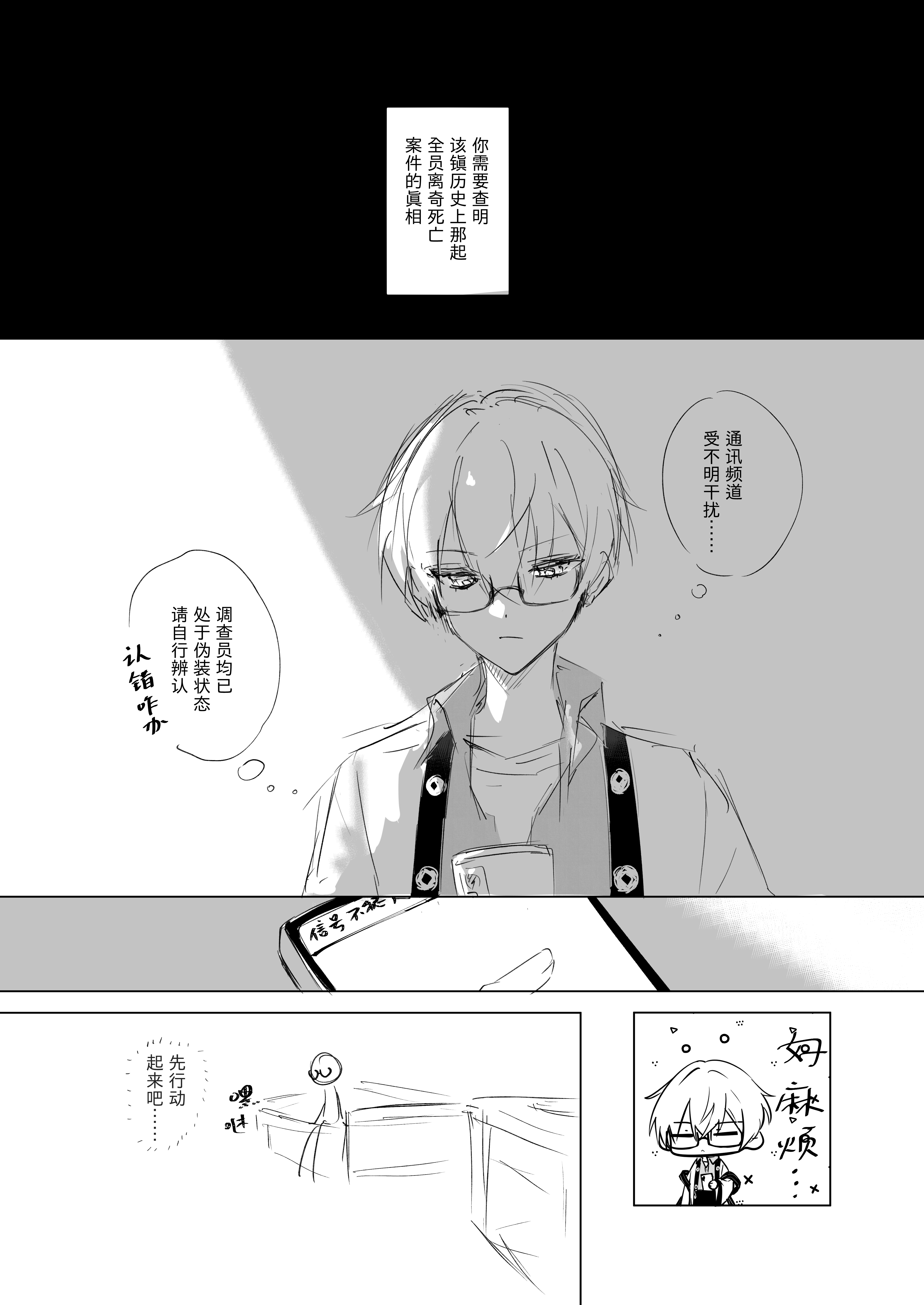 是超级大饭!!下落那张好美啊!小盛小盛好可爱哦~~~有在认真解密啊!过去的回忆让人好心疼! 被卖货人的突然变脸吓到!好会画恐怖氛围!奇变偶不变对暗号好好笑哈哈哈哈哈