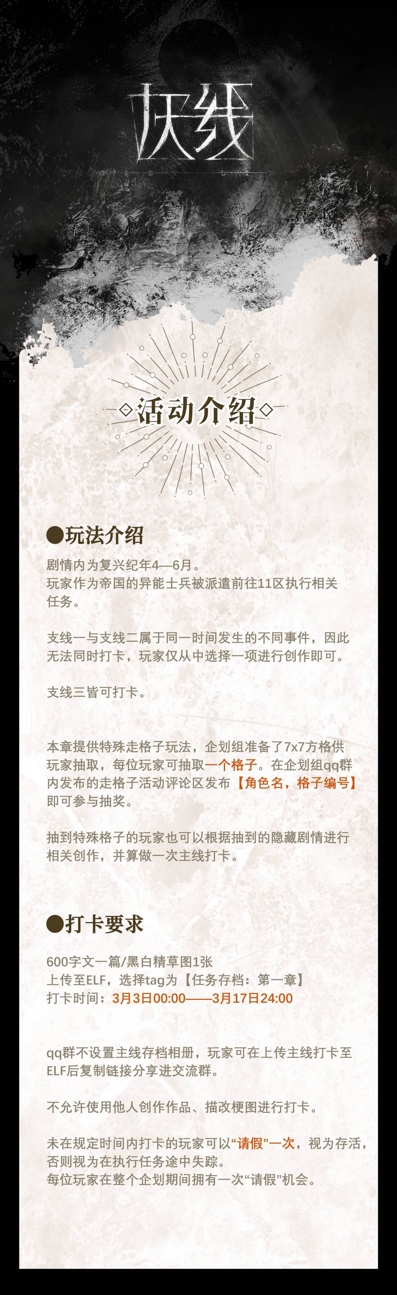 主线剧情强制打卡,相关投稿可选择标签“第一章”,详细打卡要求请看p2。