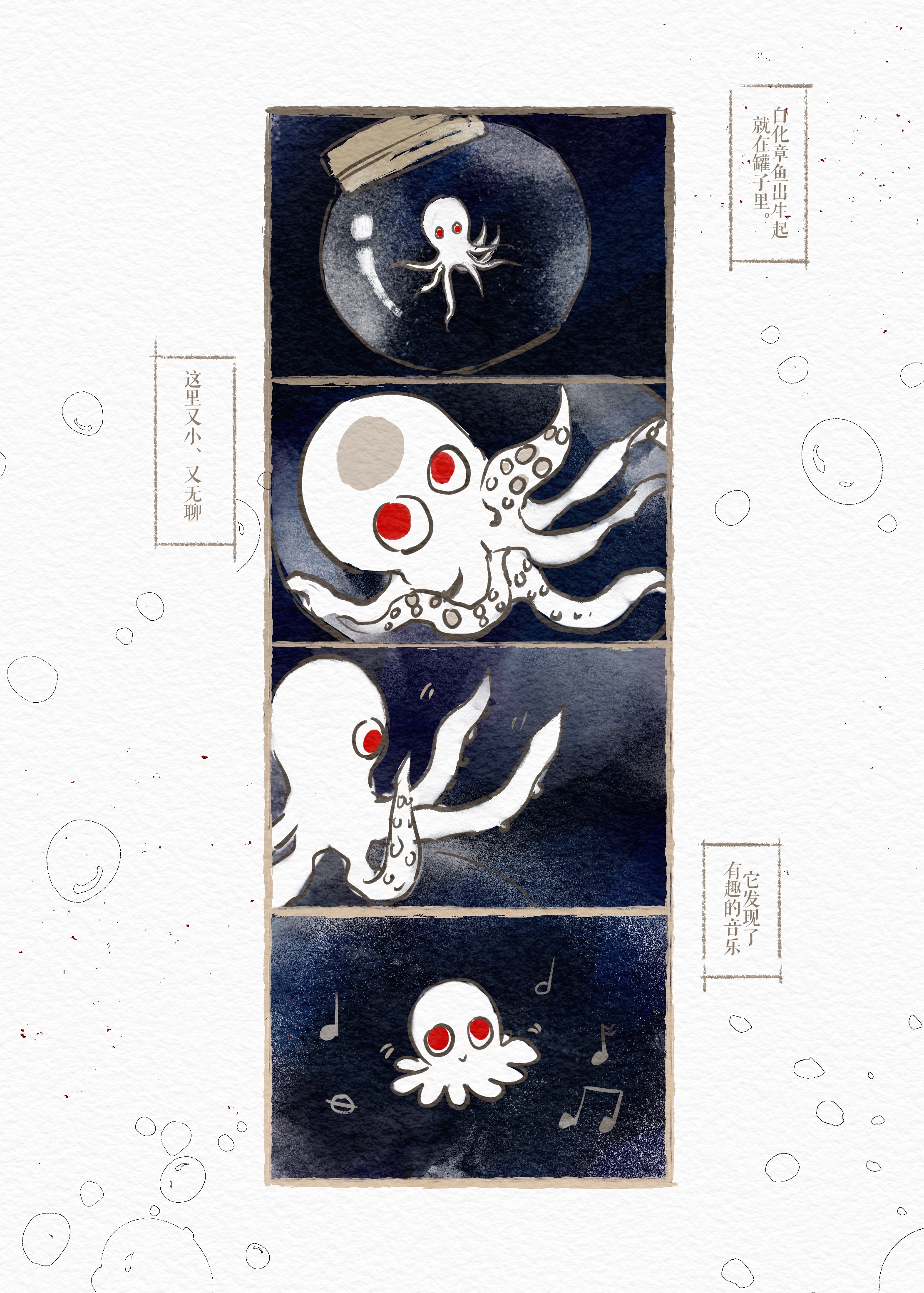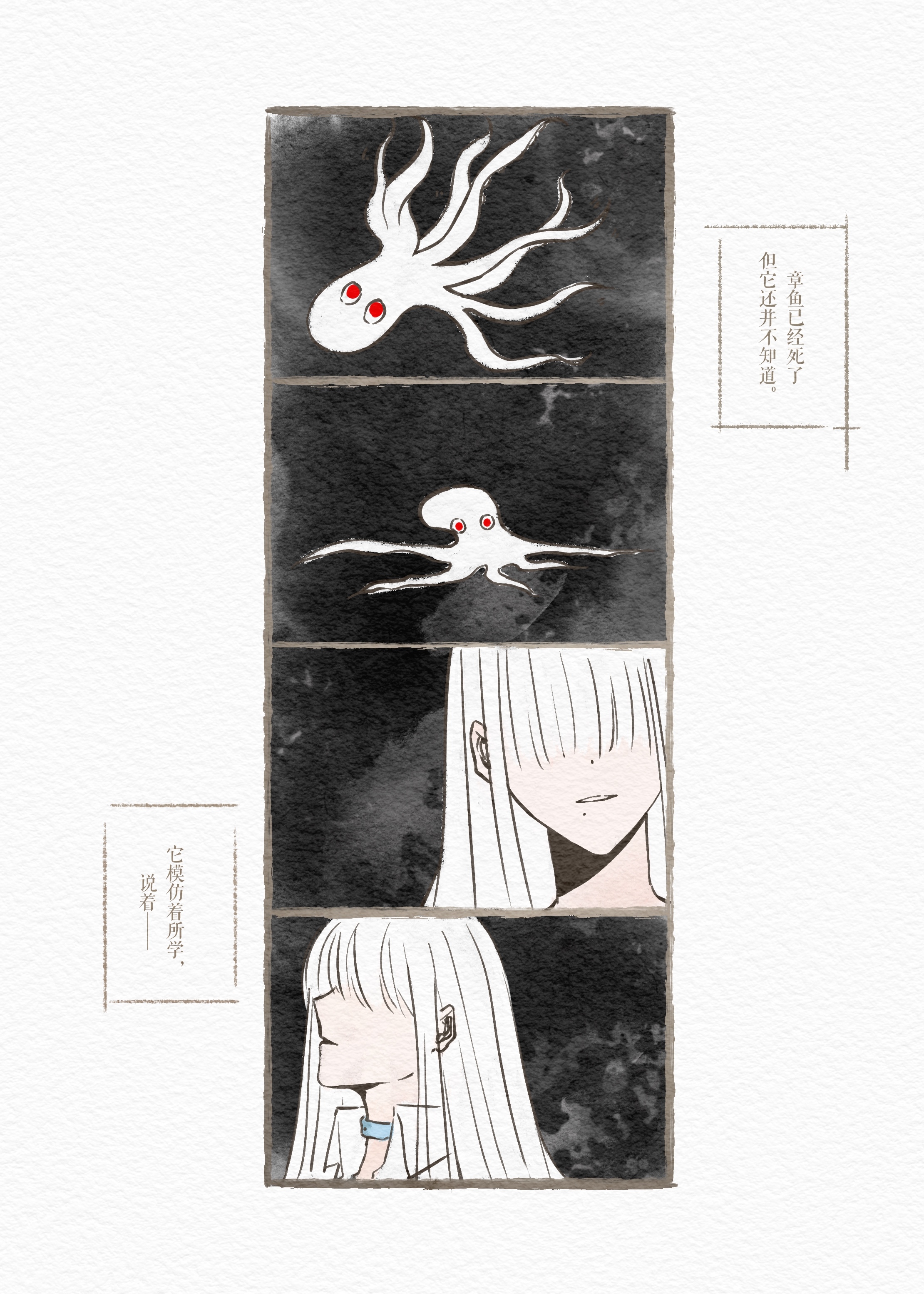好美丽的大封面好震撼……看起来像输液管其实是汲血??作为养料喂食给树木那一页太漂亮了太难过了!天呢顺子在清少眼中完全就是一只章鱼……好萌。这个描述章鱼的一辈子的画面可爱到残酷了啊啊啊啊……两个好淡淡理性的人,即使是模仿的善良也的确能给人带来一些什么或许也是美满的结局了?