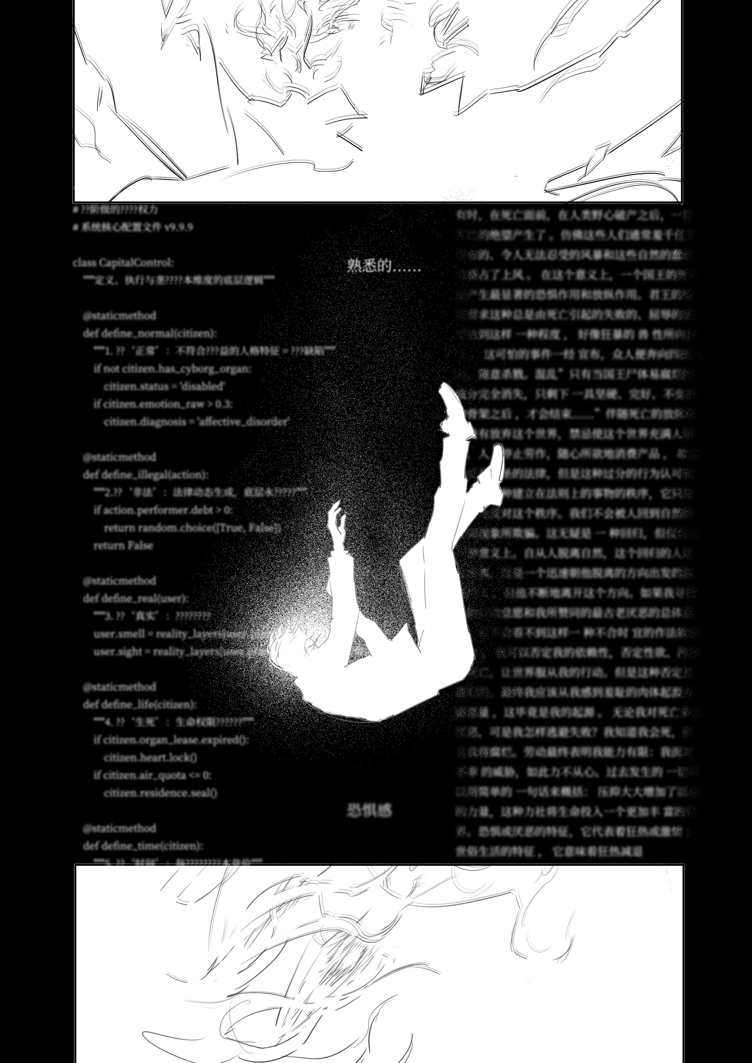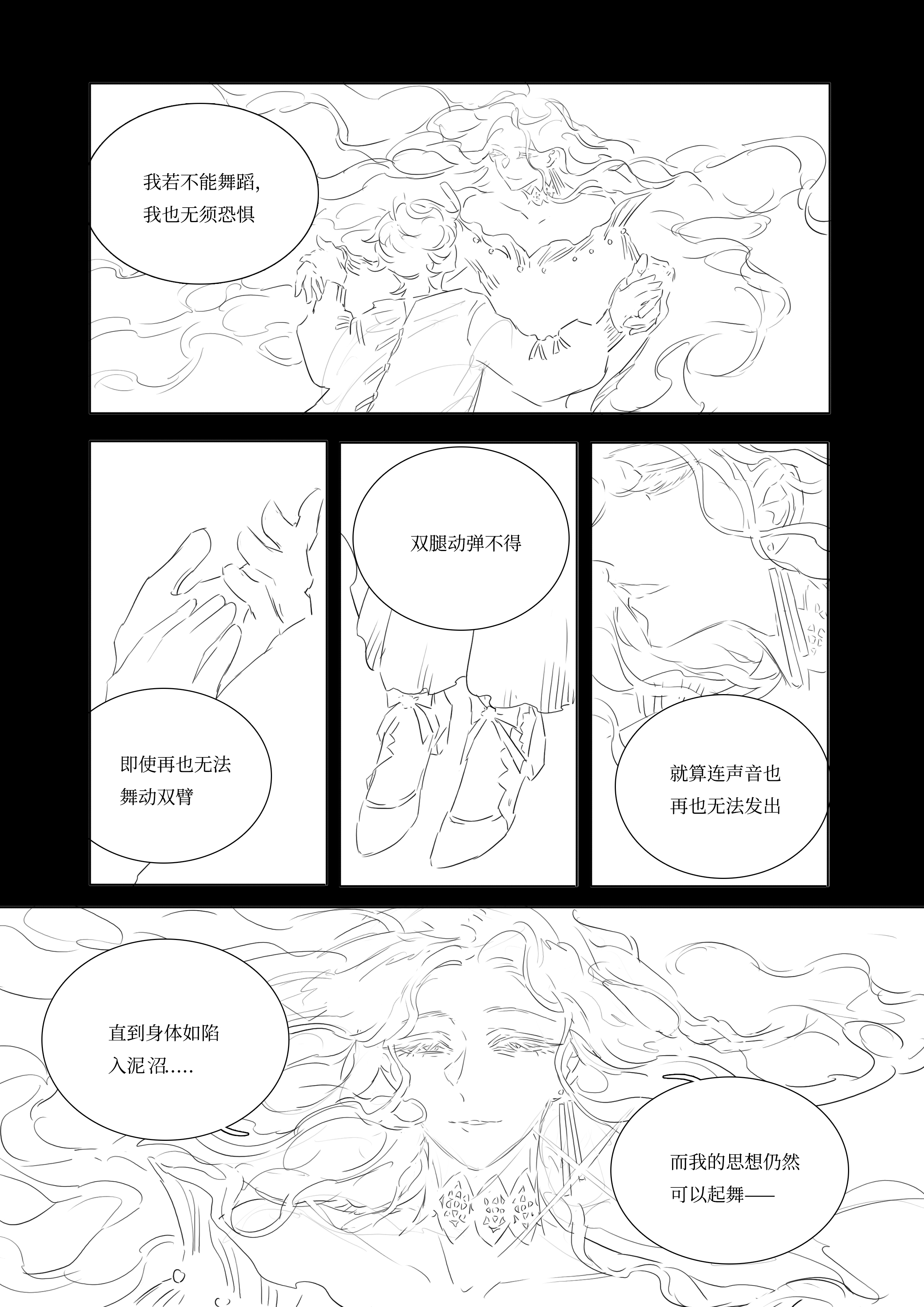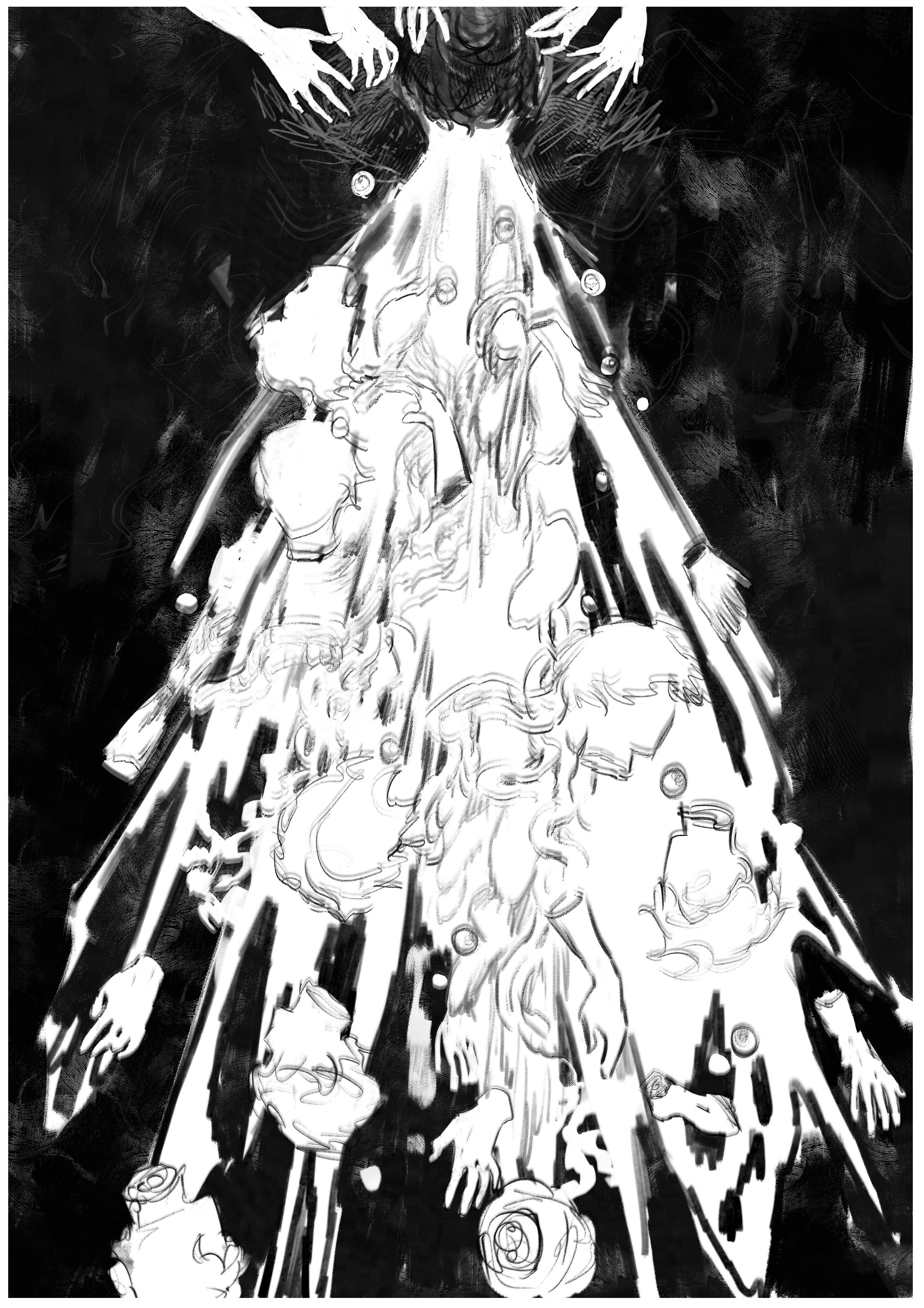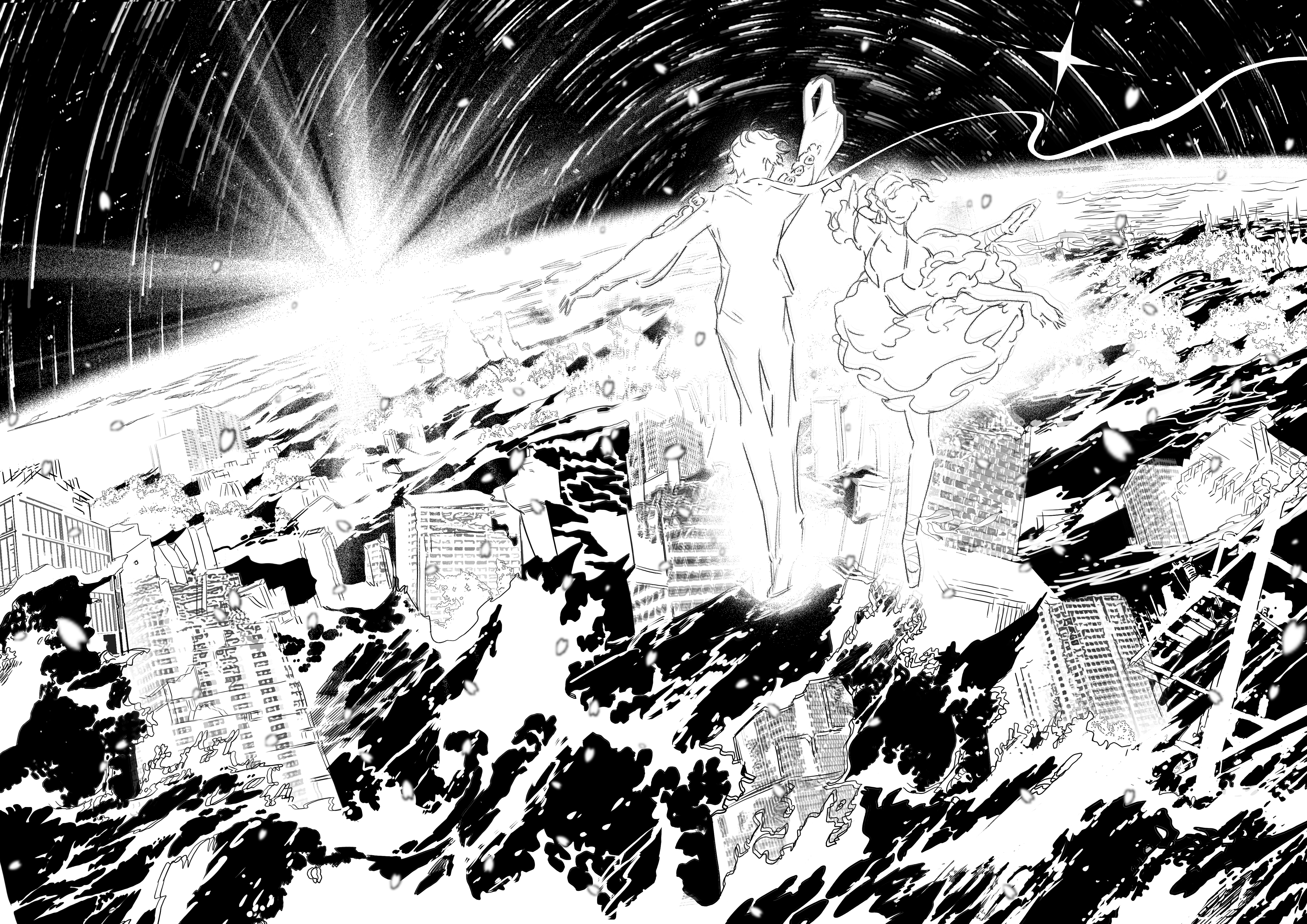 在洪水冲垮的城市之上、在宇宙之中起舞太震撼了……文明崩塌的过程中短暂瞬间的美丽在发出光亮,并且即便如此,杂声依然一直存在,“共存”的世界先被打碎了,外部的明亮与内部世界的浓郁黑暗成对比,在这样的世界中,必须要做出选择才可以……终于有一个主导的意识开始完整不受影响的发出声音,但是这确实建立在无数其他的自我死亡的代价上,是血肉之花,之后会走向什么样的道路呢……
