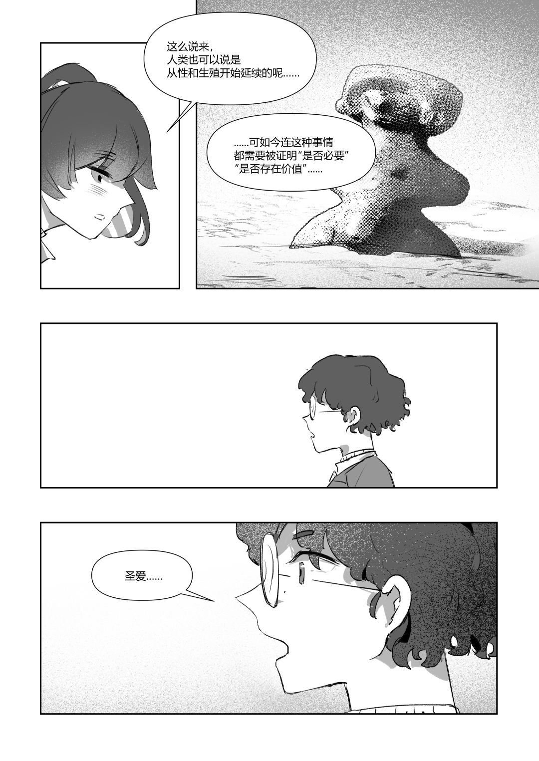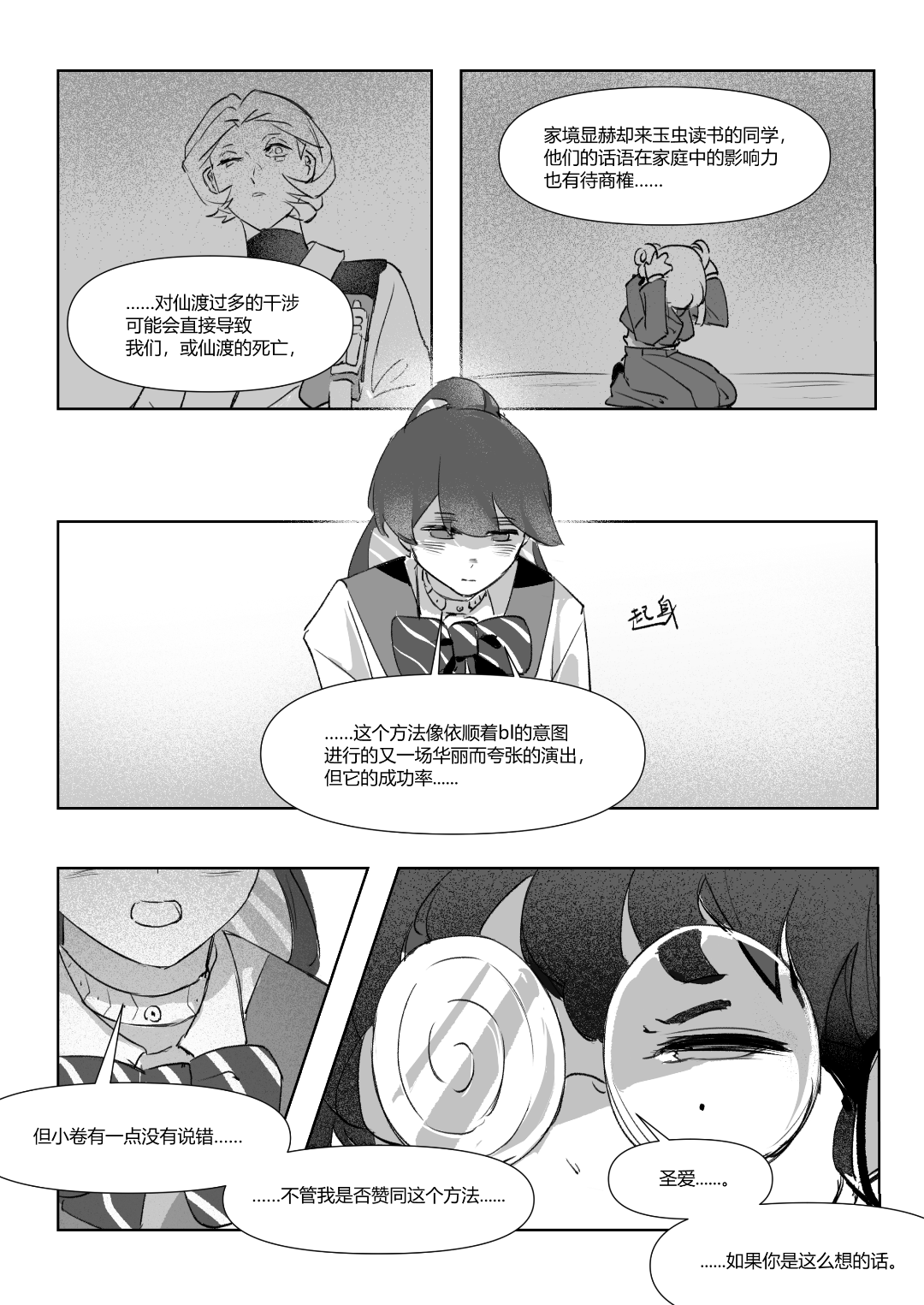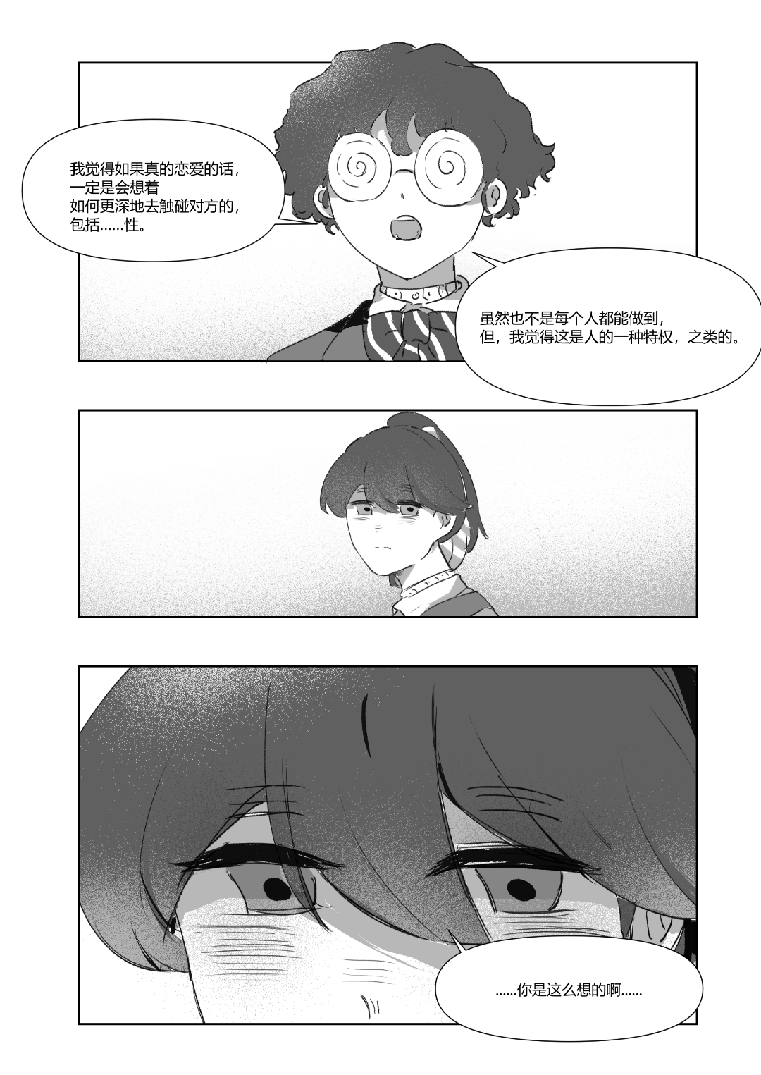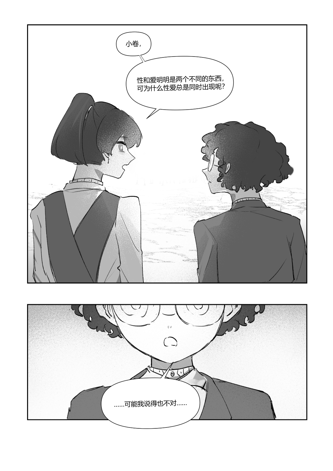 啊啊啊圣爱和小卷的关系性好有意思(同一个前任以及有类似的兴趣关注,但其实关注的方向又不一样),很喜欢你们聊着聊着性爱就跳到改变bl这件事!开头对比自己在外面时对bl法所观察到的现象和自己当下情况的觉察这一点也很喜欢,期待小卷即使如此也想要努力做出一些影响的事(开始第一步了)
