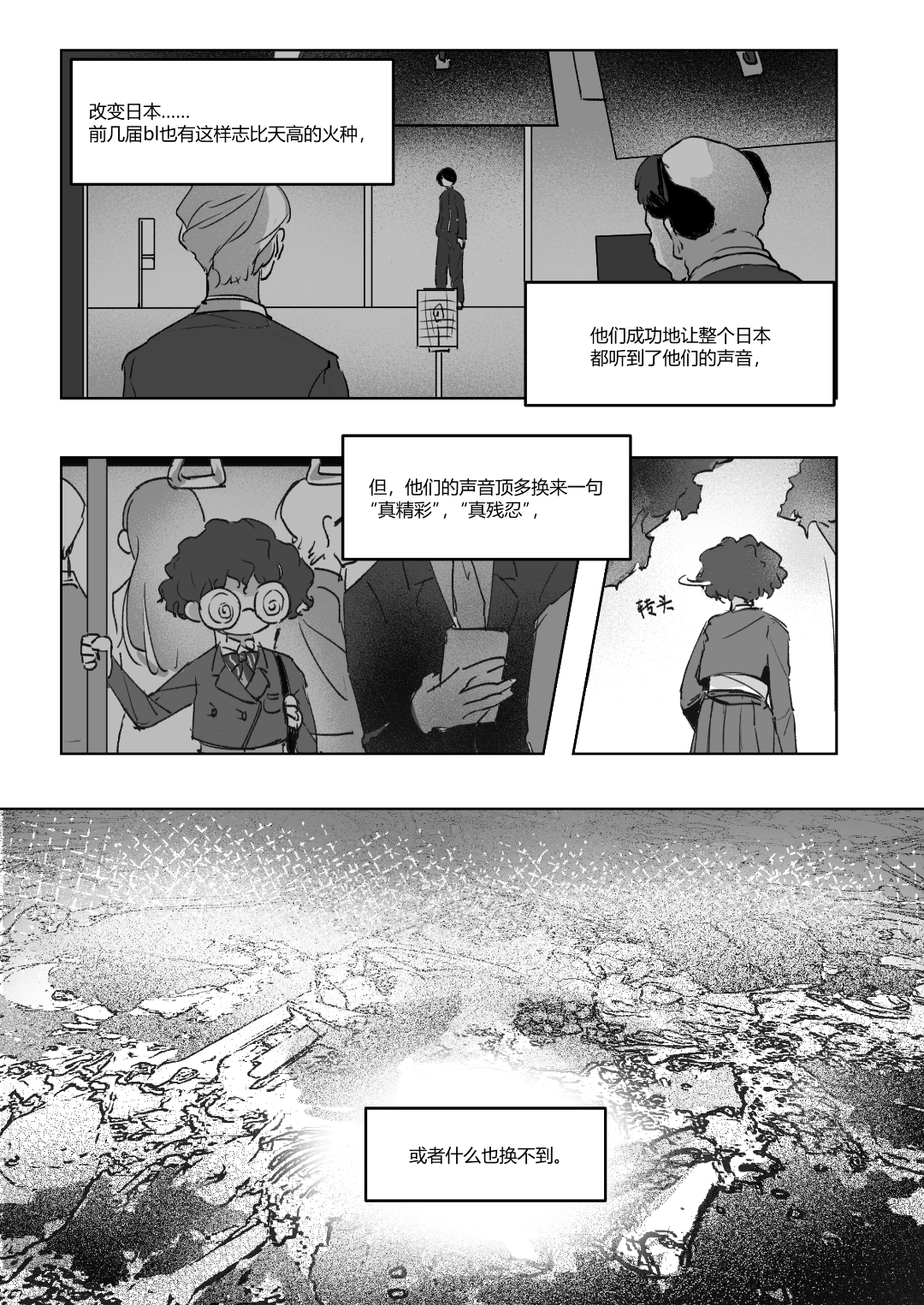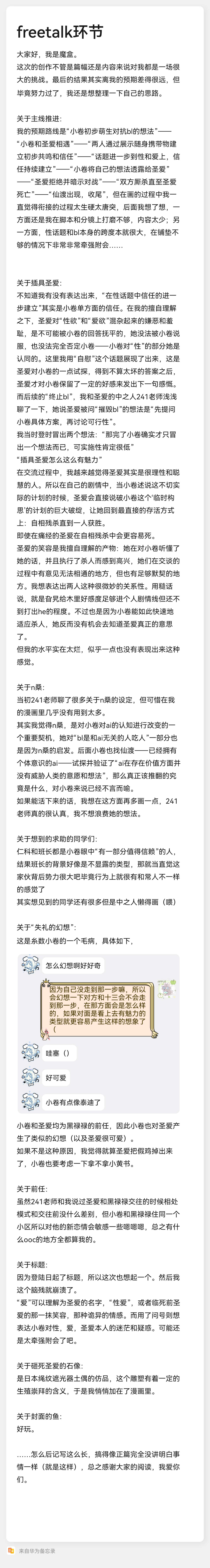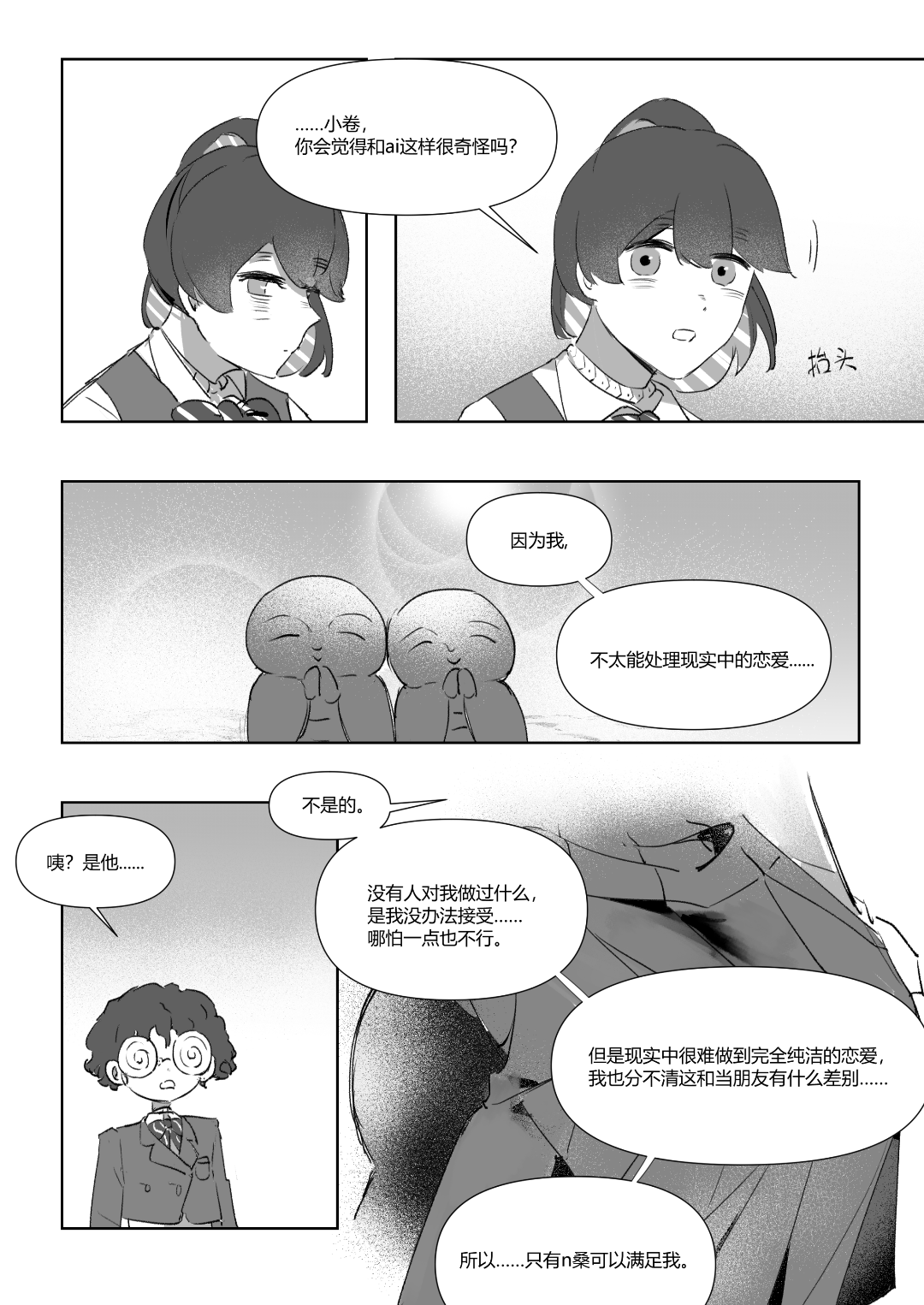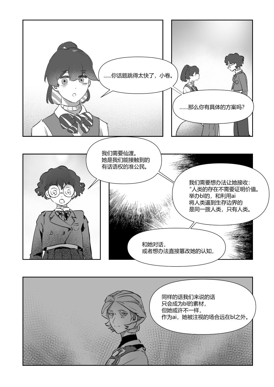 啊啊啊圣爱和小卷的关系性好有意思(同一个前任以及有类似的兴趣关注,但其实关注的方向又不一样),很喜欢你们聊着聊着性爱就跳到改变bl这件事!开头对比自己在外面时对bl法所观察到的现象和自己当下情况的觉察这一点也很喜欢,期待小卷即使如此也想要努力做出一些影响的事(开始第一步了)