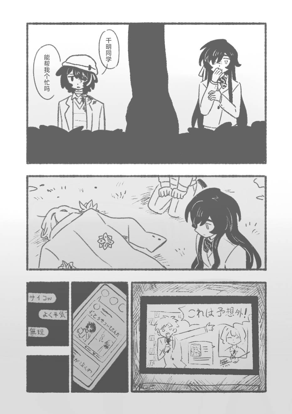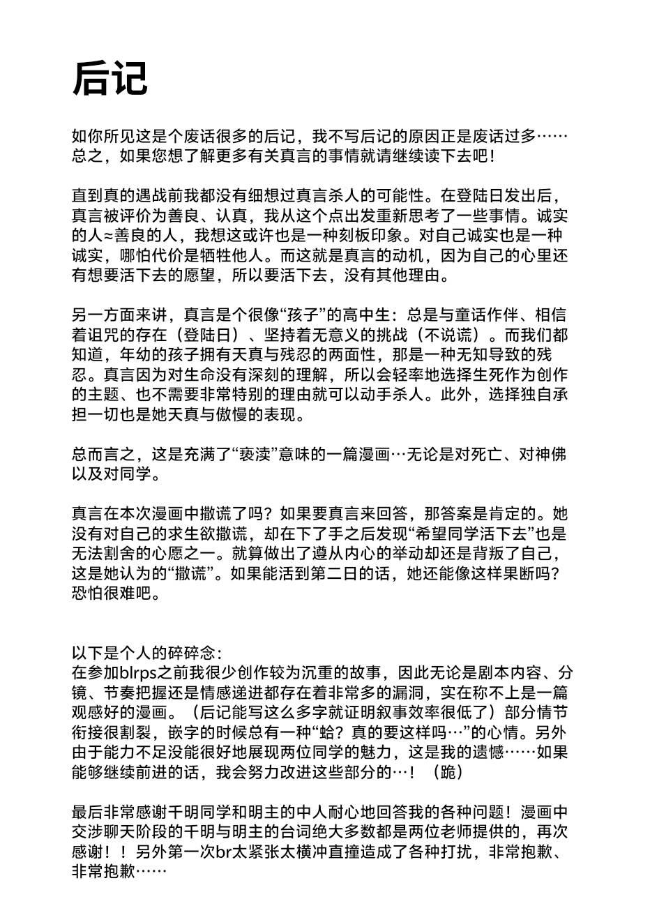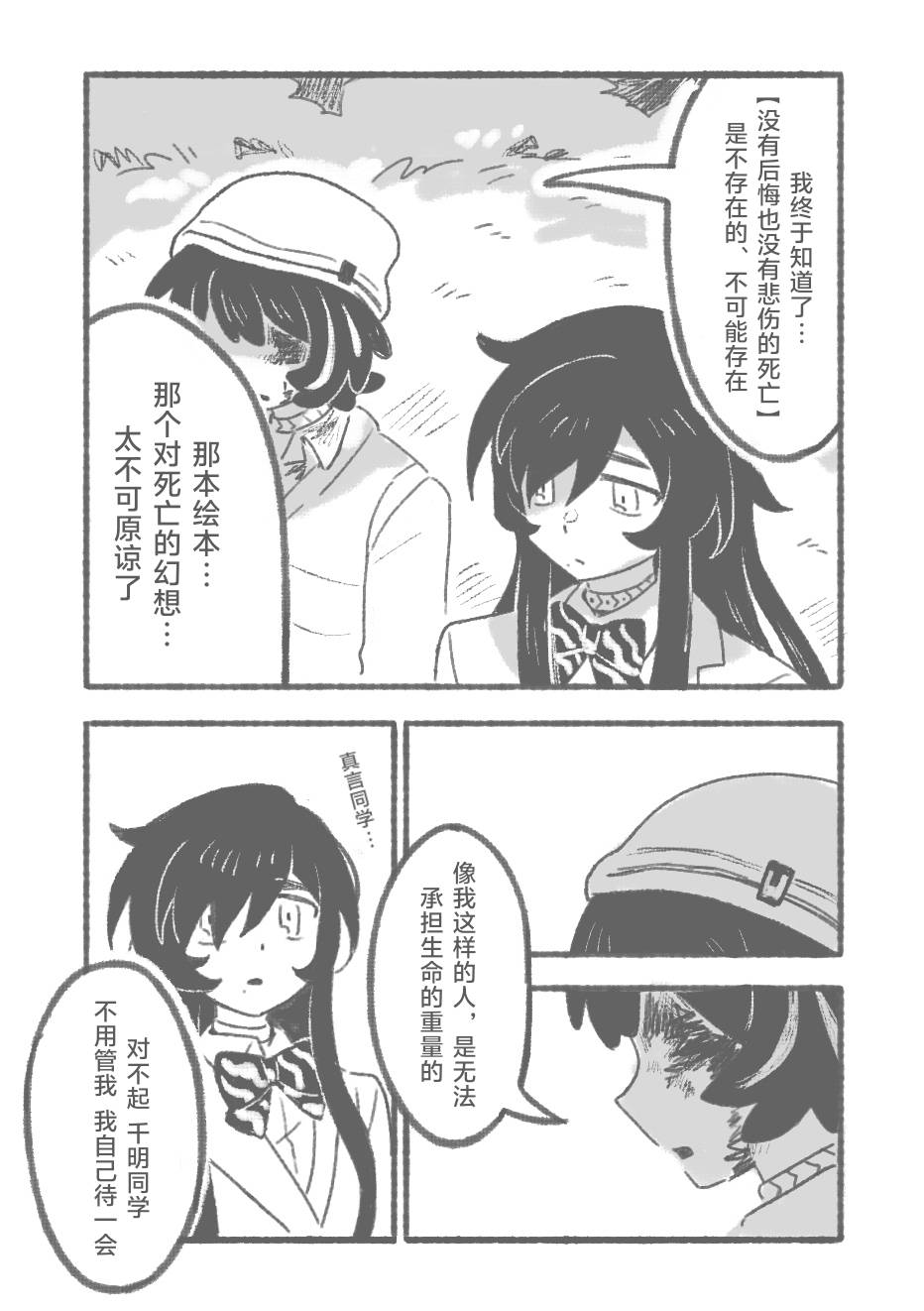 是的是的 这一话标题就叫做目录(?) 正片32p(不含封面)p36为封面解析 这一篇里可以窥见真言独特的诚实学(???)某种意义上来讲还真是有些搞不懂她的脑回路呢? 厚着脸皮把老师和ai加奈也响应了一下… 其他想说的大概都在后记里了,对不起漫画低手先挖个地洞逃走了……(消散) (打了好多括号,好多废话口牙!)
