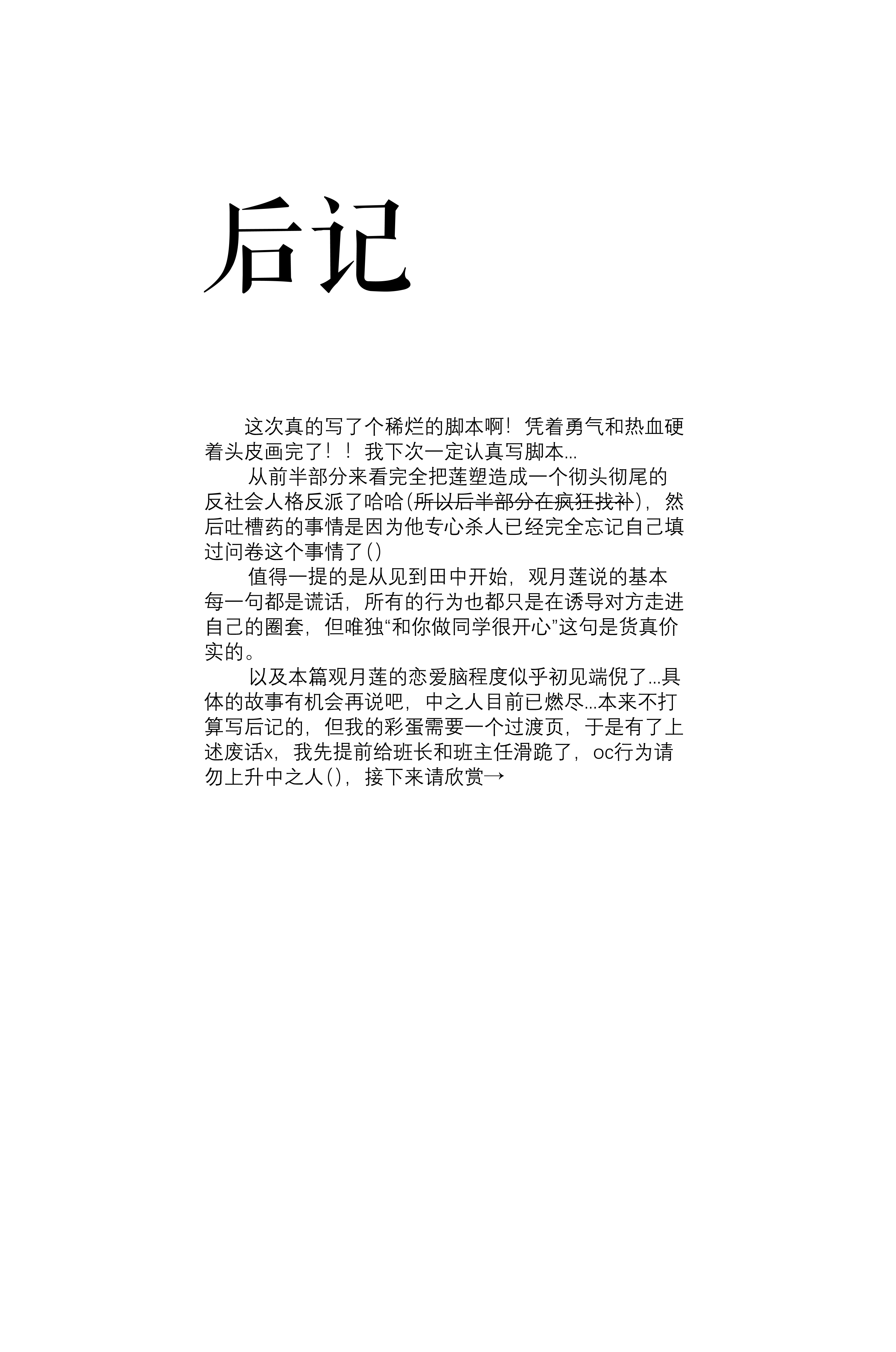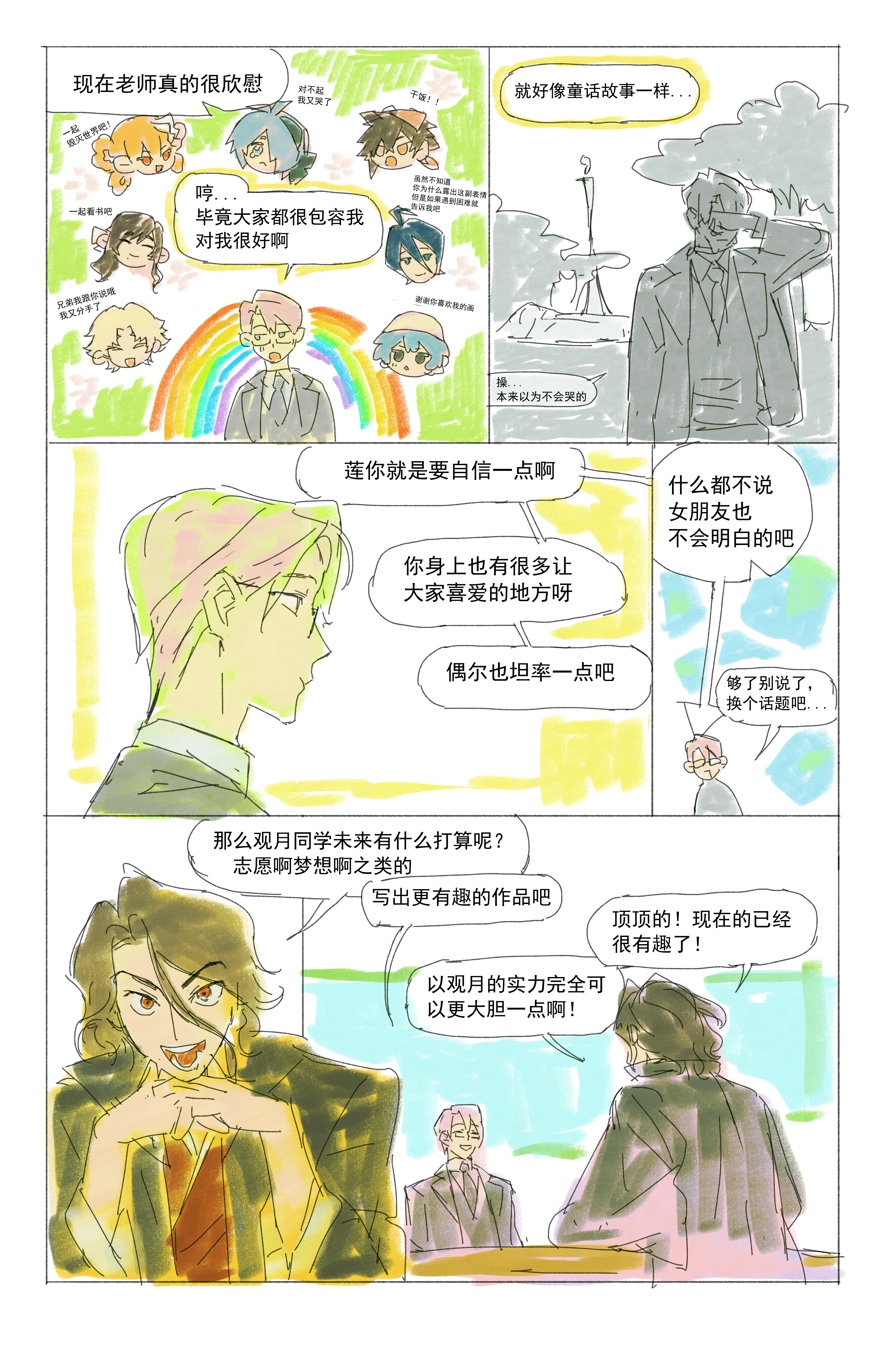 omg感谢长评!既然身在其中,既然自己已经变成这个“悲剧”的其中一员无力回天,那么就暂时将自己从这种痛苦的情感中解离出来吧。如果是从一个作家的角度,那么“毫不留情地杀死对方”便是“我”这个反面角色承担的任务。哪怕是这样的谎言也可以从中获得勇气,实在是非常矛盾的人呢。