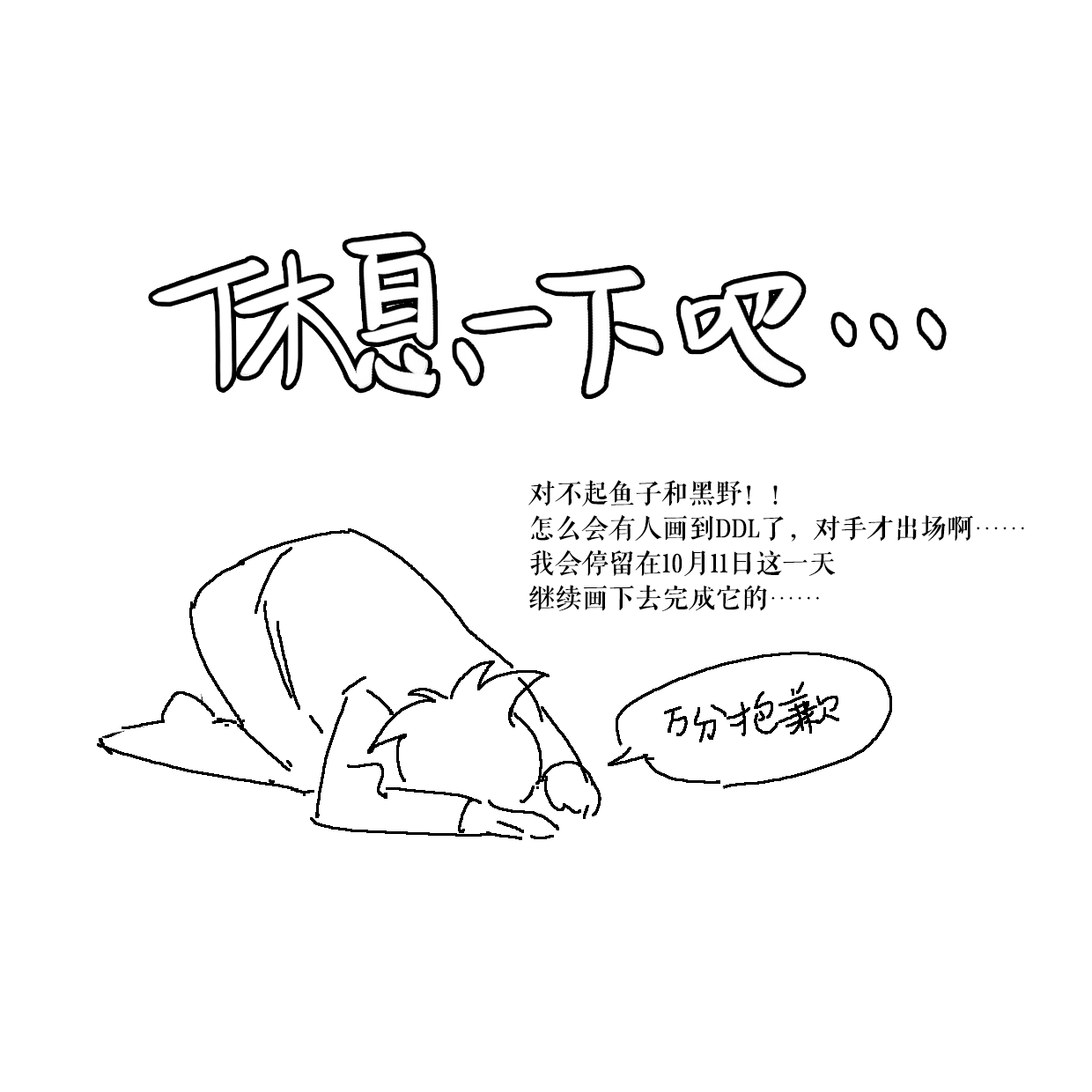 拖3c后腿了,我太拉了画太少了,……并且写了我不可能画得完的剧本量,会后续继续缓慢地画完再响应角色。