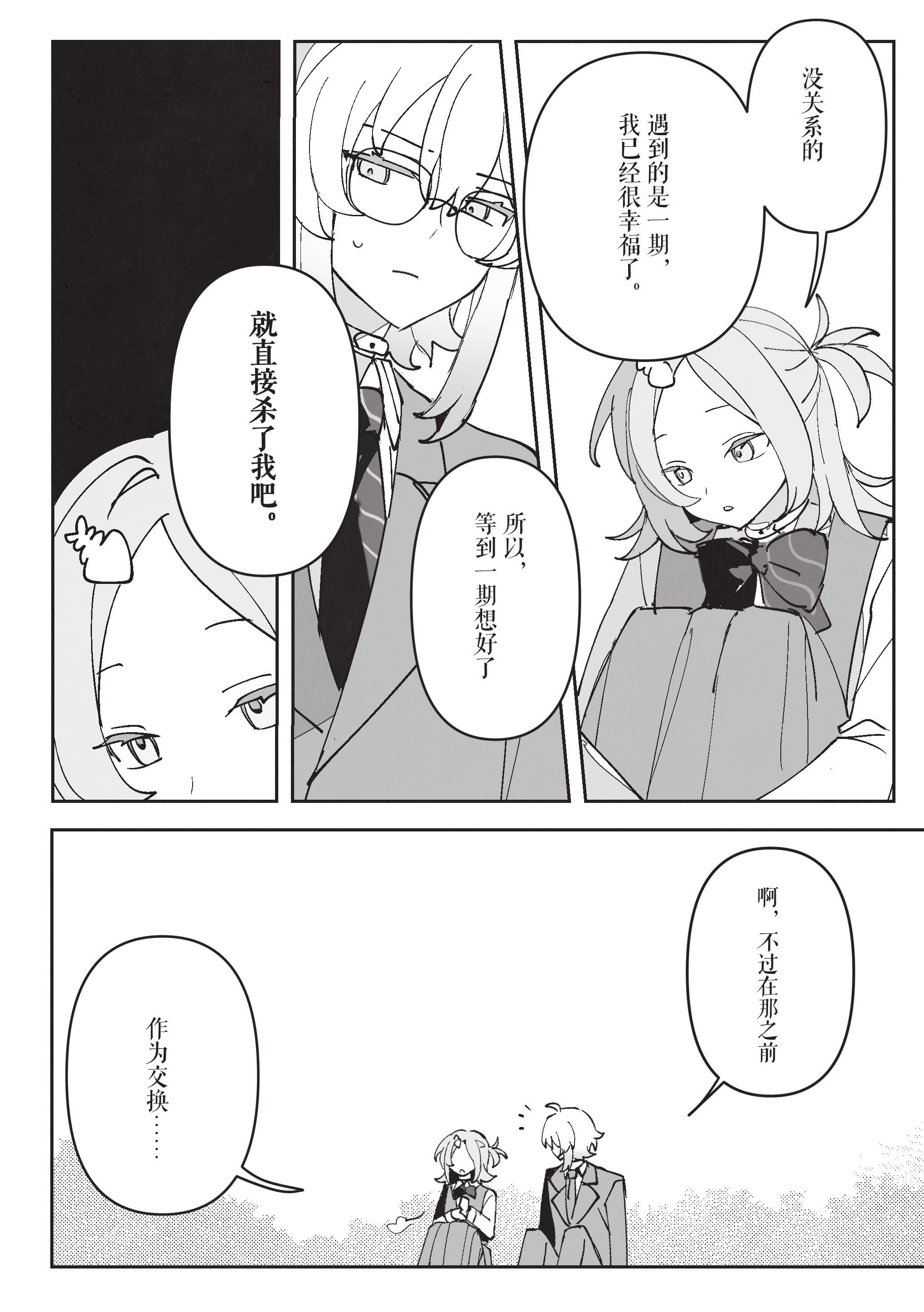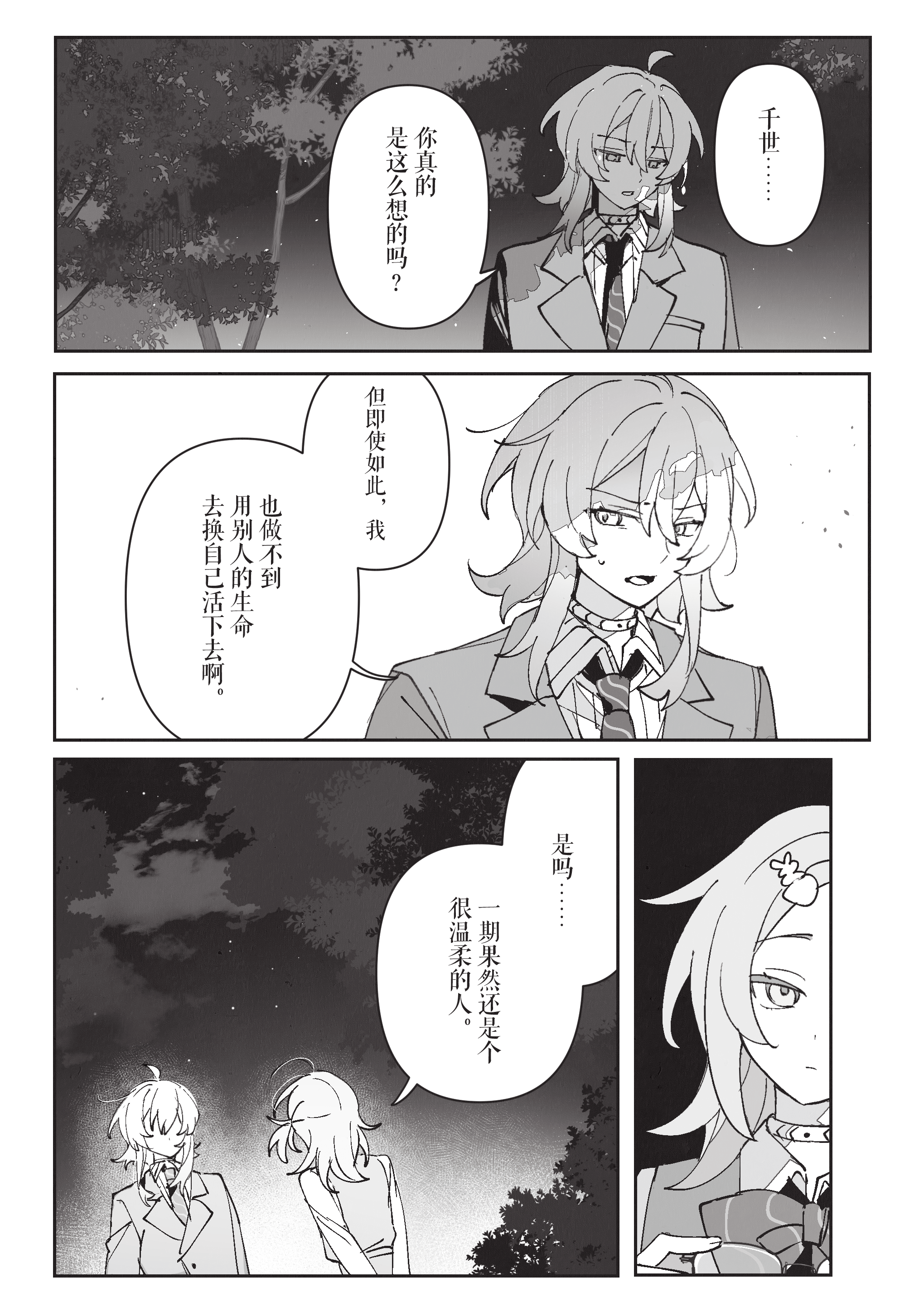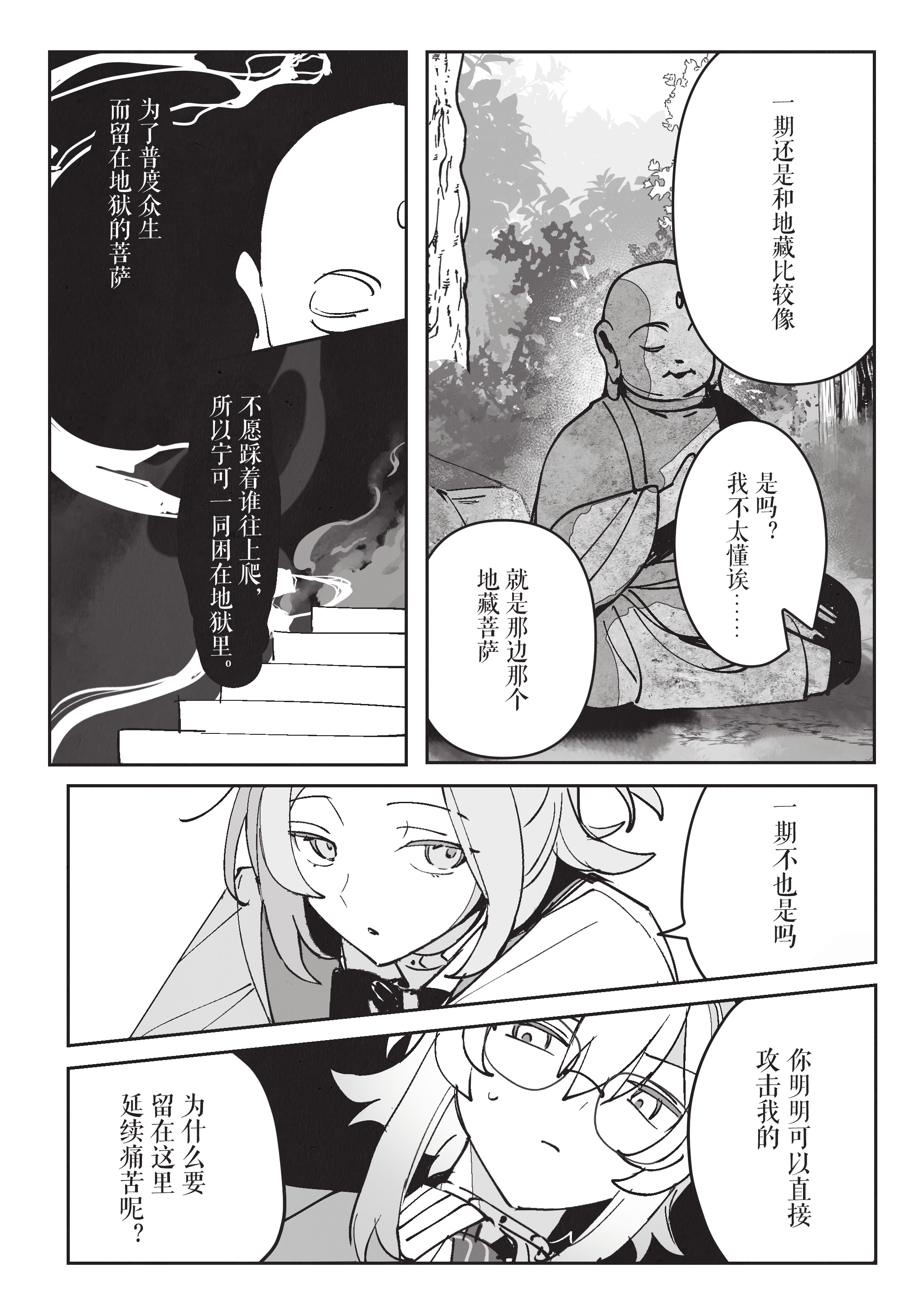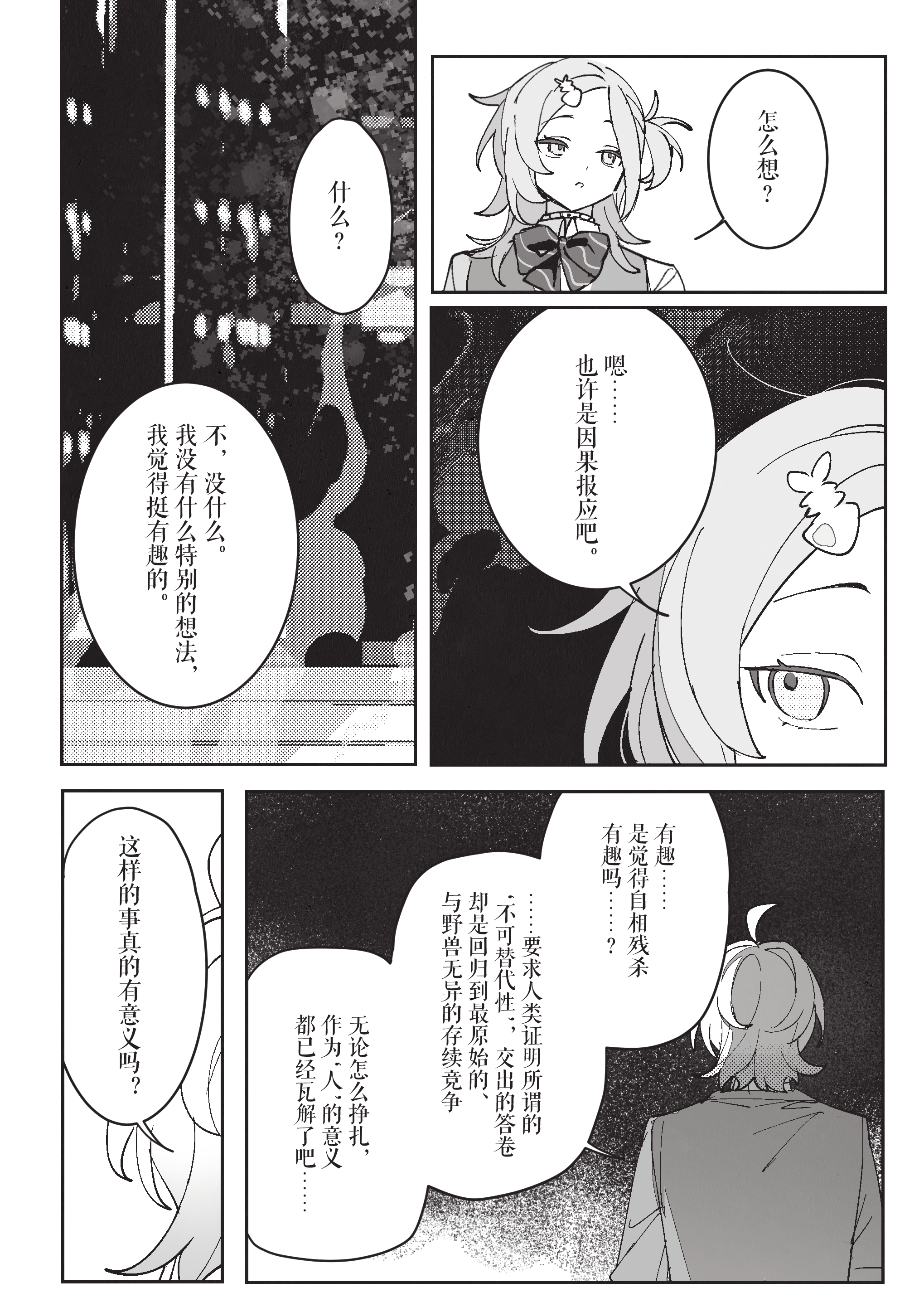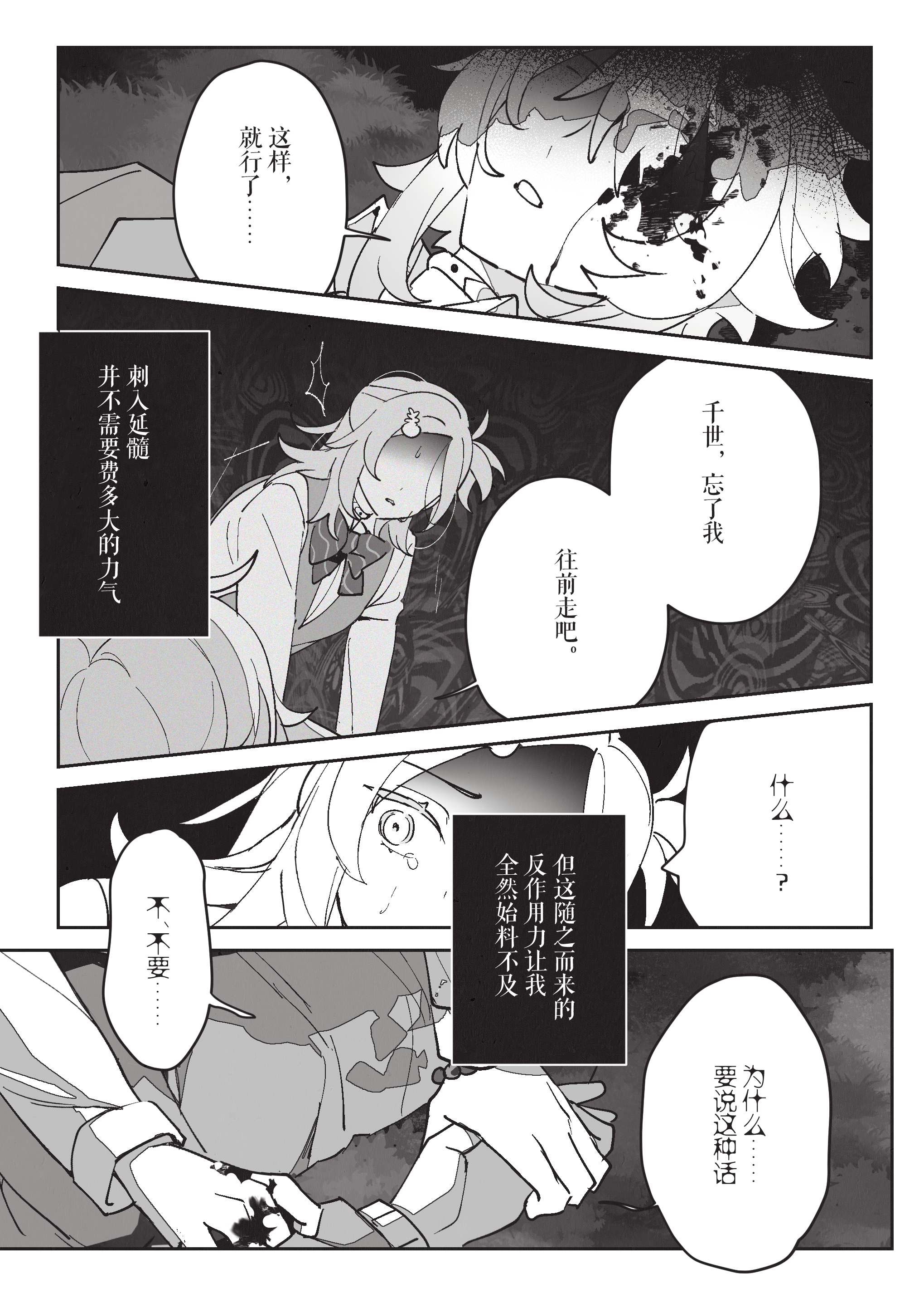 从一开始觉得自己看淡生死,到和一期共享珍稀的日常超人时间,再到时限接近终于紧逼一期很有前面慢慢部署、给一期机会杀自己的感觉。到最后一口气击杀也很有种黑中盘胜感(不熟围棋单纯从最后的三个棋盘感觉)淡人攻击真人后开始反应到杀人的感觉甚至开始觉得愉悦这真是啊啊啊啊 谢谢哈姆大人,要看更多围棋和佛禅联系(不熟佛教,但莫名联想这样杀下去不知道千世会不会算走上修罗道?)