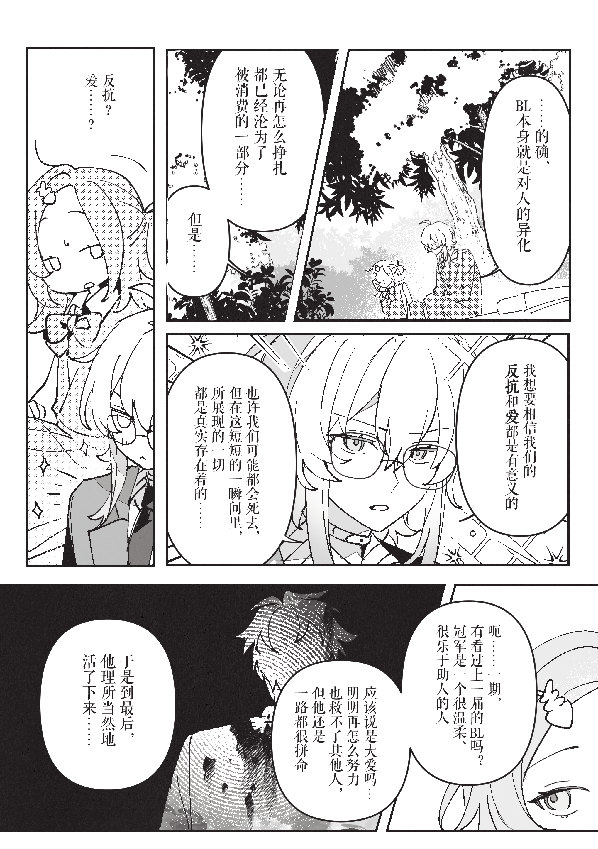 看似淡漠的脱线的人在过界以后才找到真我的阵痛的成长史!太爱看把一期杀掉以后忍不住进行无谓地道歉了,又开始讲一些事到如今已经无用的感悟啊!染粉发的理由太可爱了,脱线的部分在喜欢的人(概念)面前表现成有吸收到好的地方,这一切都不似大爱只是像非常私人的恋爱,像遗孀一样扭曲地趴在人身前也好萌。对痛苦上瘾的M你只能继续活下去了。