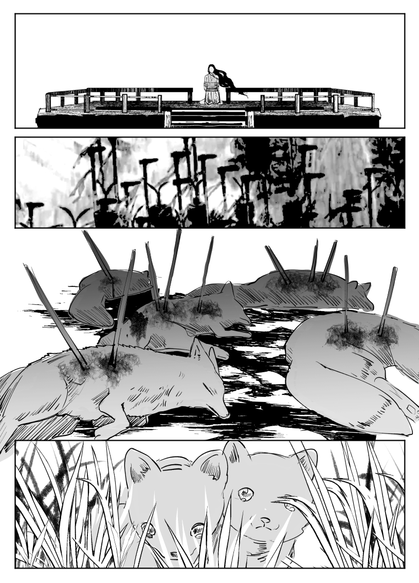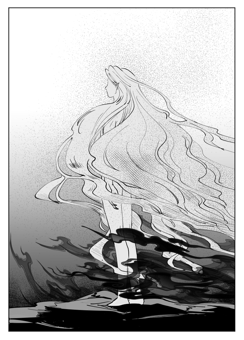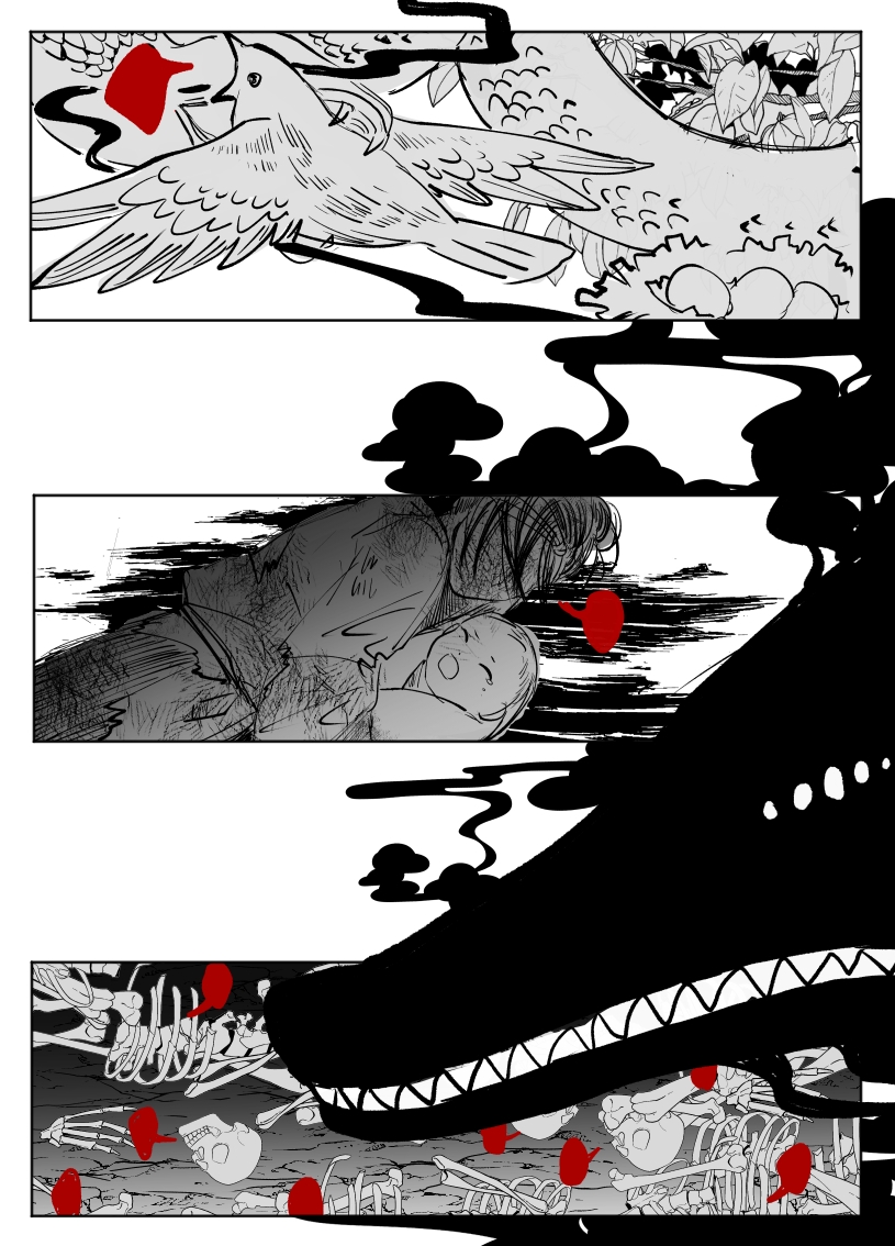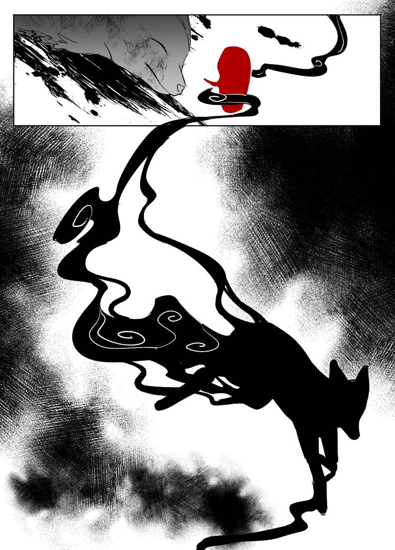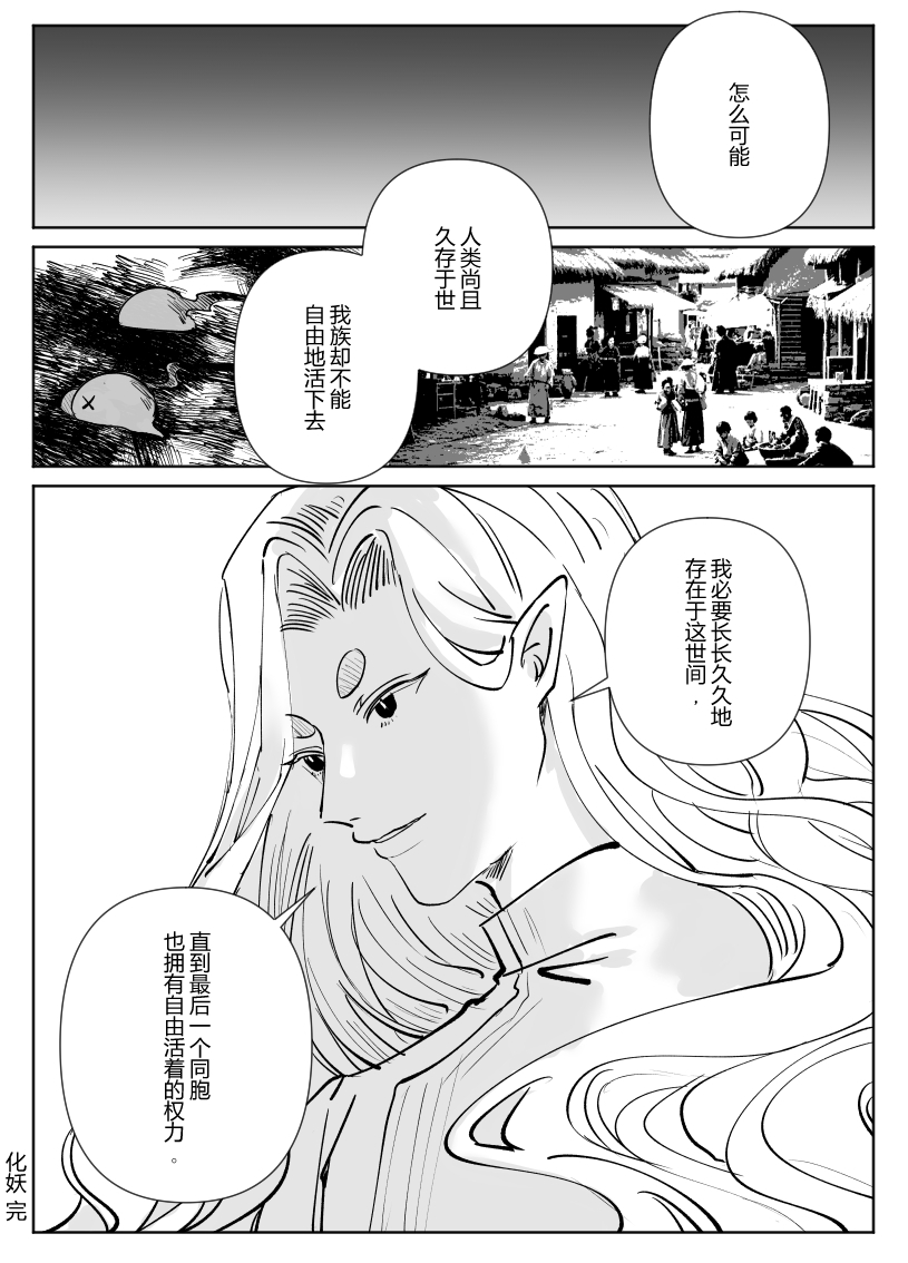 分镜太帅了!!求死者的绝望与吞噬一切的墨色,从中诞生的却是纯白的人形,好神圣啊(? 由无数个想要活下去的愿望凝聚而出的妖物,他的愿望也只是想让同族们自由地活着而已……必须支持妖权运动了TT