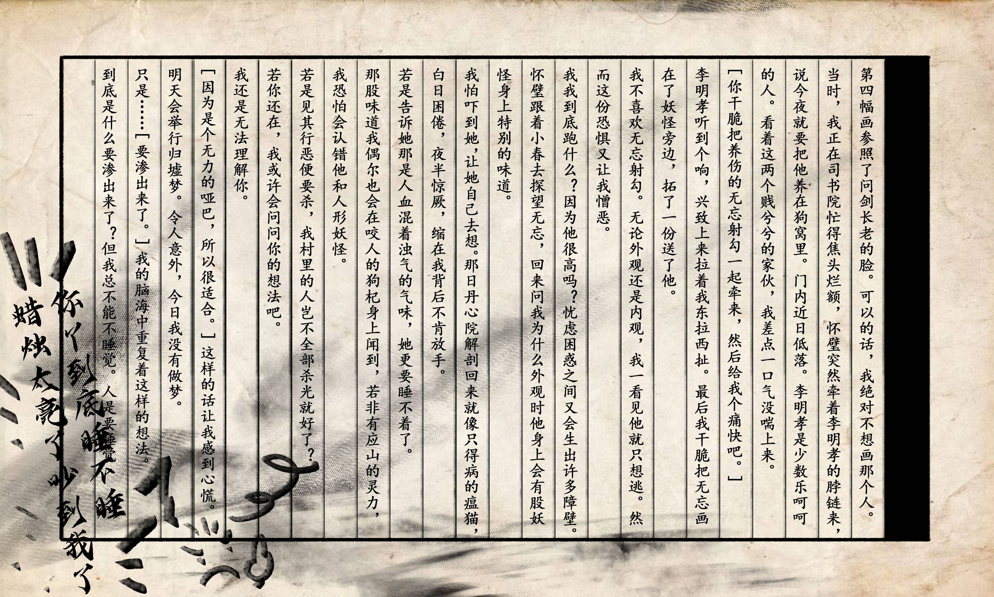??末尾两p表达史怀仁内心痛苦的冲击感太强了(也是因为前面情感和剧情铺垫特别好……)怀仁自我身份认同感感觉不算高……内心一直在为了过去的回忆痛苦着(这也很难忘掉吧!)??哦哦……师兄……