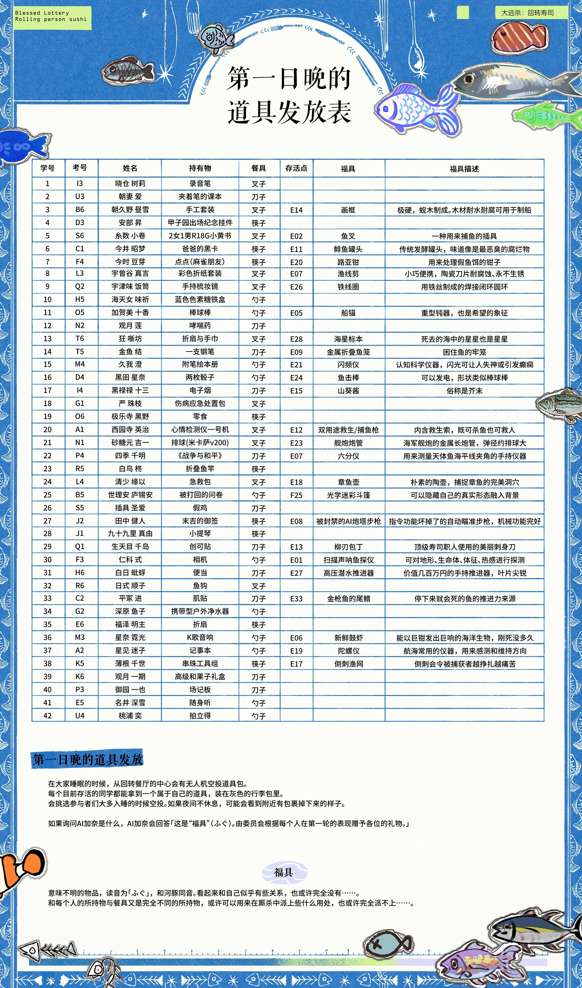 第一日结算、第二日主线、福具表