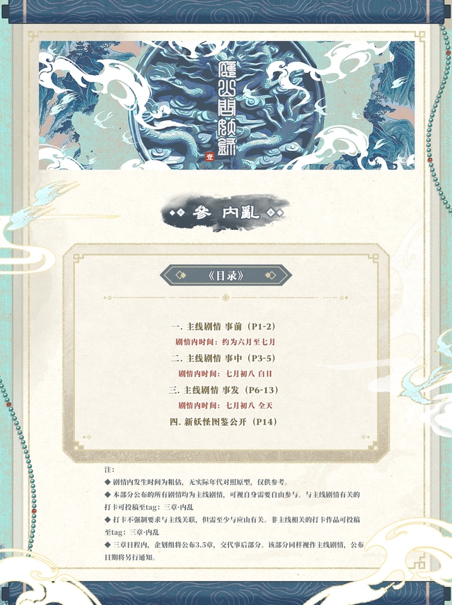 *修正:首页目录内的投稿tag说明勘误,非主线相关的打卡作品可投稿至tag:三章·非主线。带来不便十分抱歉!!