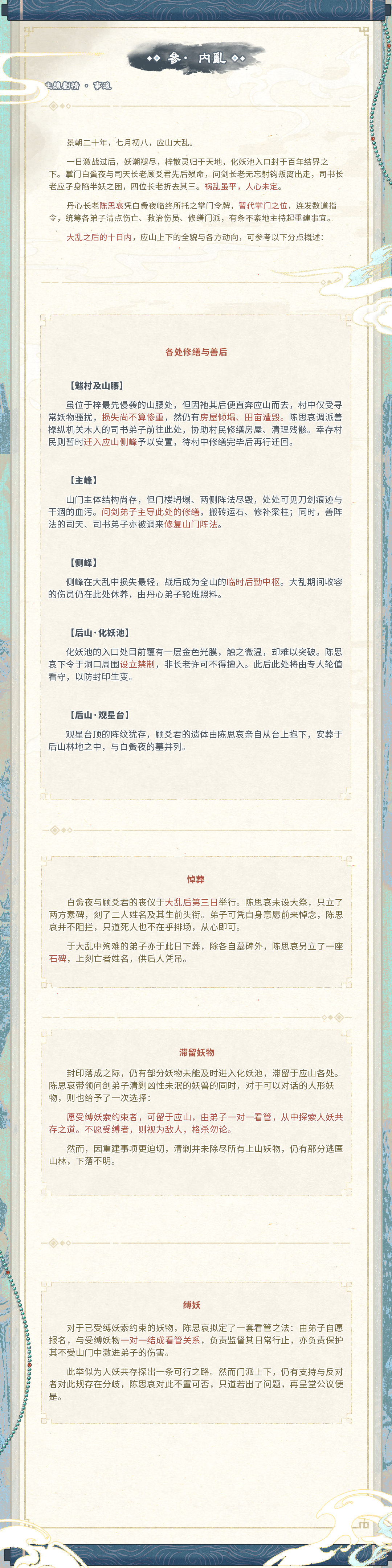该部分主要为交代3章主线事后重建部分,该部分同样视作三章主线,玩家可视需要参考创作。