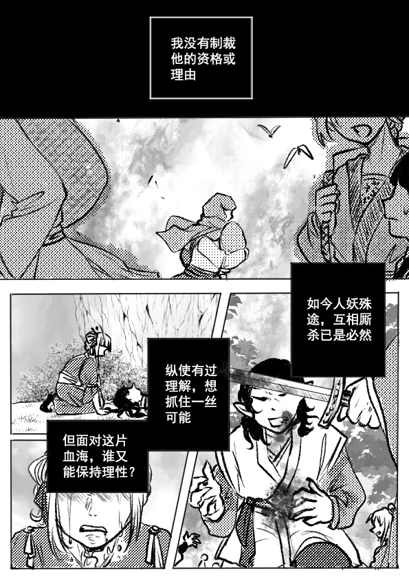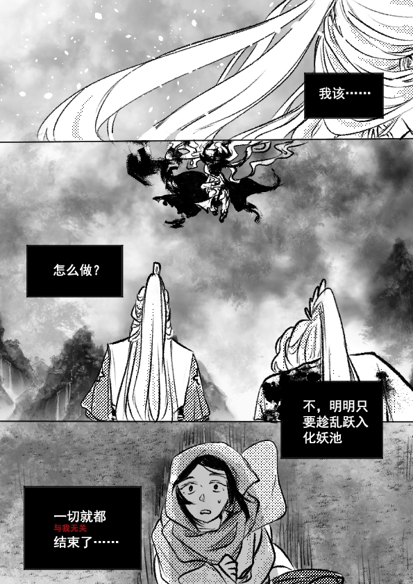 哦哦哦?!没有扔掉小宝宝!这个场景是由于战场上动荡不安,突然一个大晃动孩子没拿稳脱手了,在即将触地的一瞬被秋池回收了(两者融合)。而且一直抱着逃难确实不方便……但以放弃孩子的角度想也挺好品的?有那种告别过去的味儿。总之 ,活着就好!原本就是给安排着回妖界的……也是一种改变呢