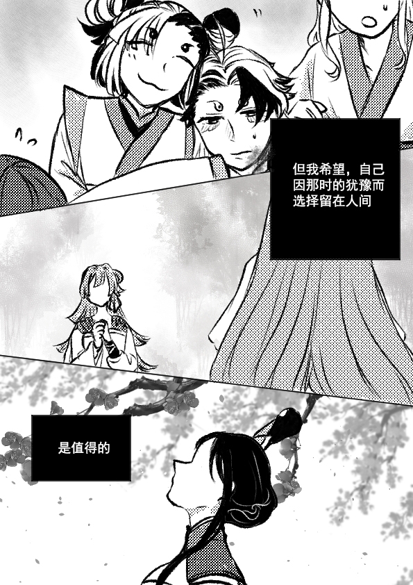 看得想给夹咪跪下了,越看越好味,谢谢夹咪带我互动(……?)故事线叙述好完整,无论是前进也好犹豫也好还是选择留在人间大家心怀希望走下去吧……!