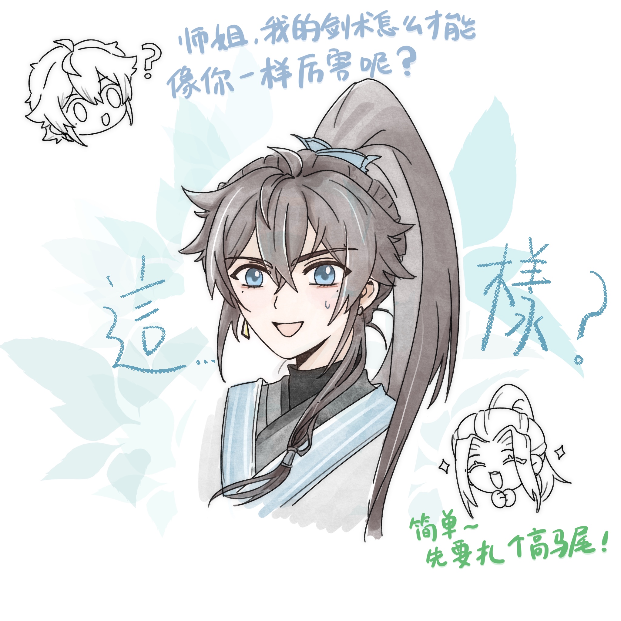 哦哦哦高马尾清爽少年!!!妙啊!!!师弟你记住,剑谱第一页,先扎高马尾!第二页,修炼无情道!第三页,找婆娘……
