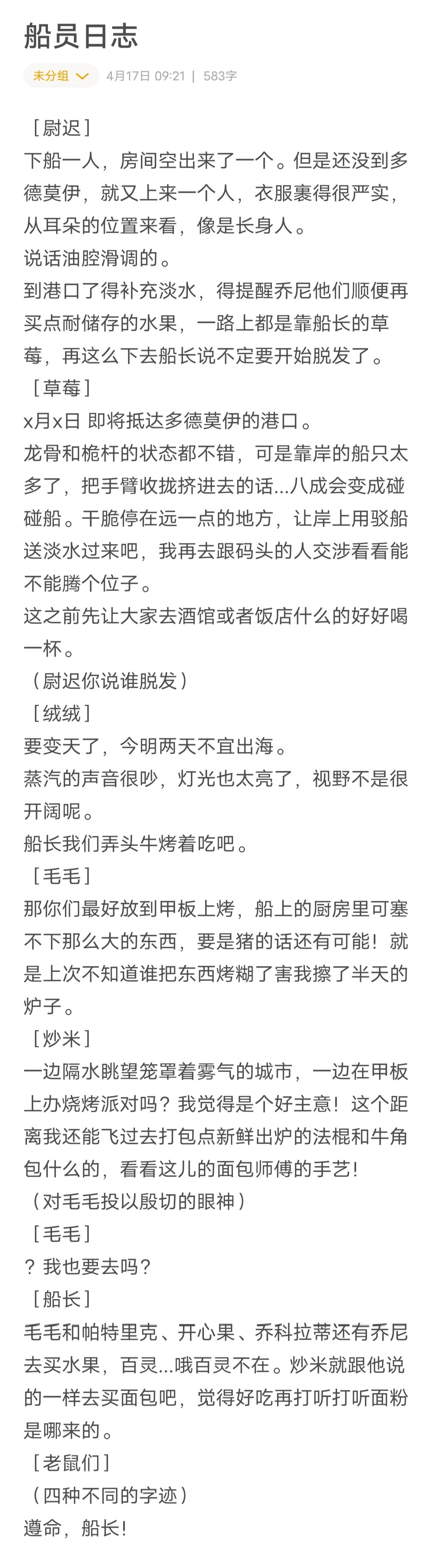 ps:我们的船客还很害羞,尚未加入此次对话