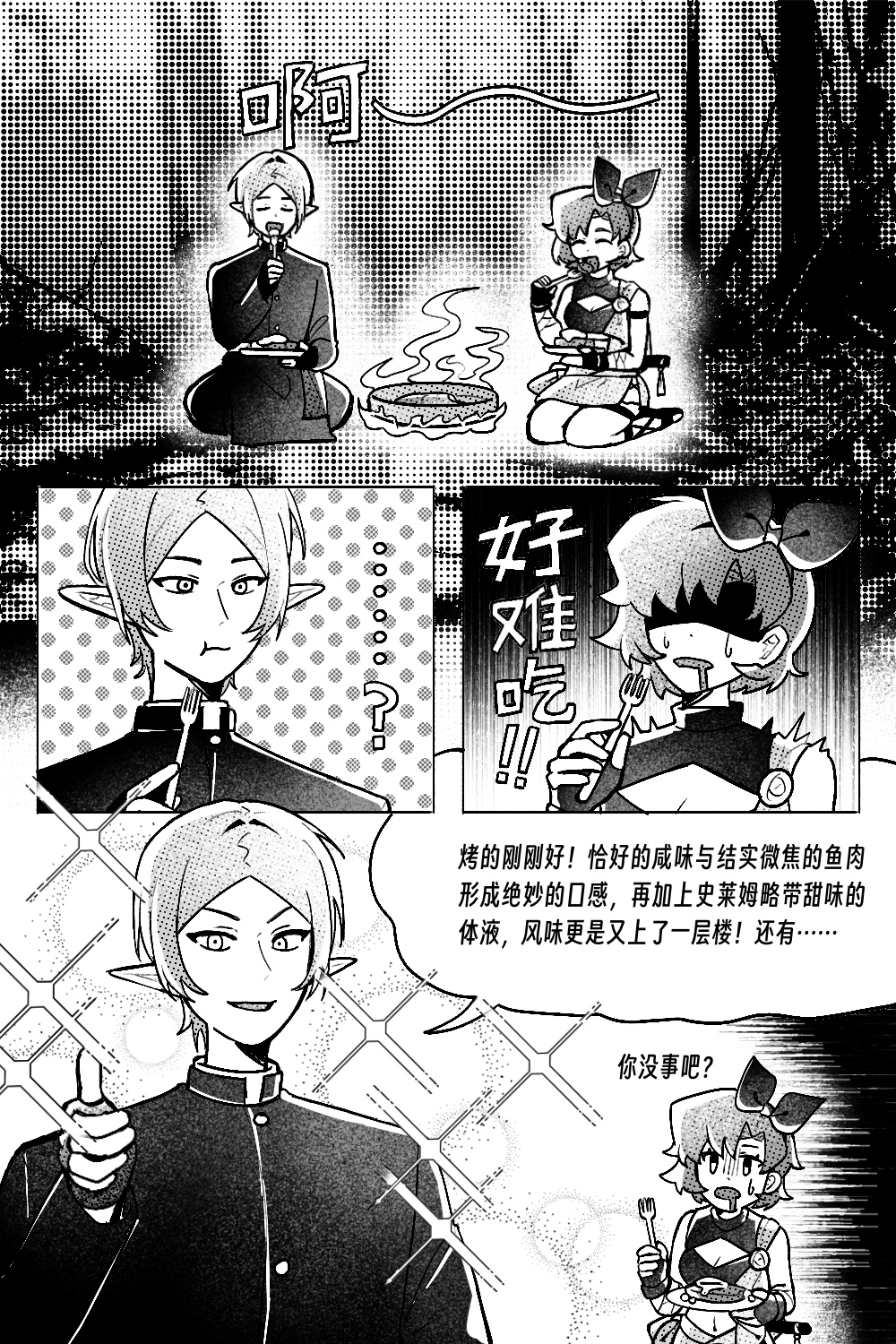 在我们怪物饭的世界里肚子饿了就会自动刷新出神秘厨子出现开始做饭的!嗯嗯(抱手点头)