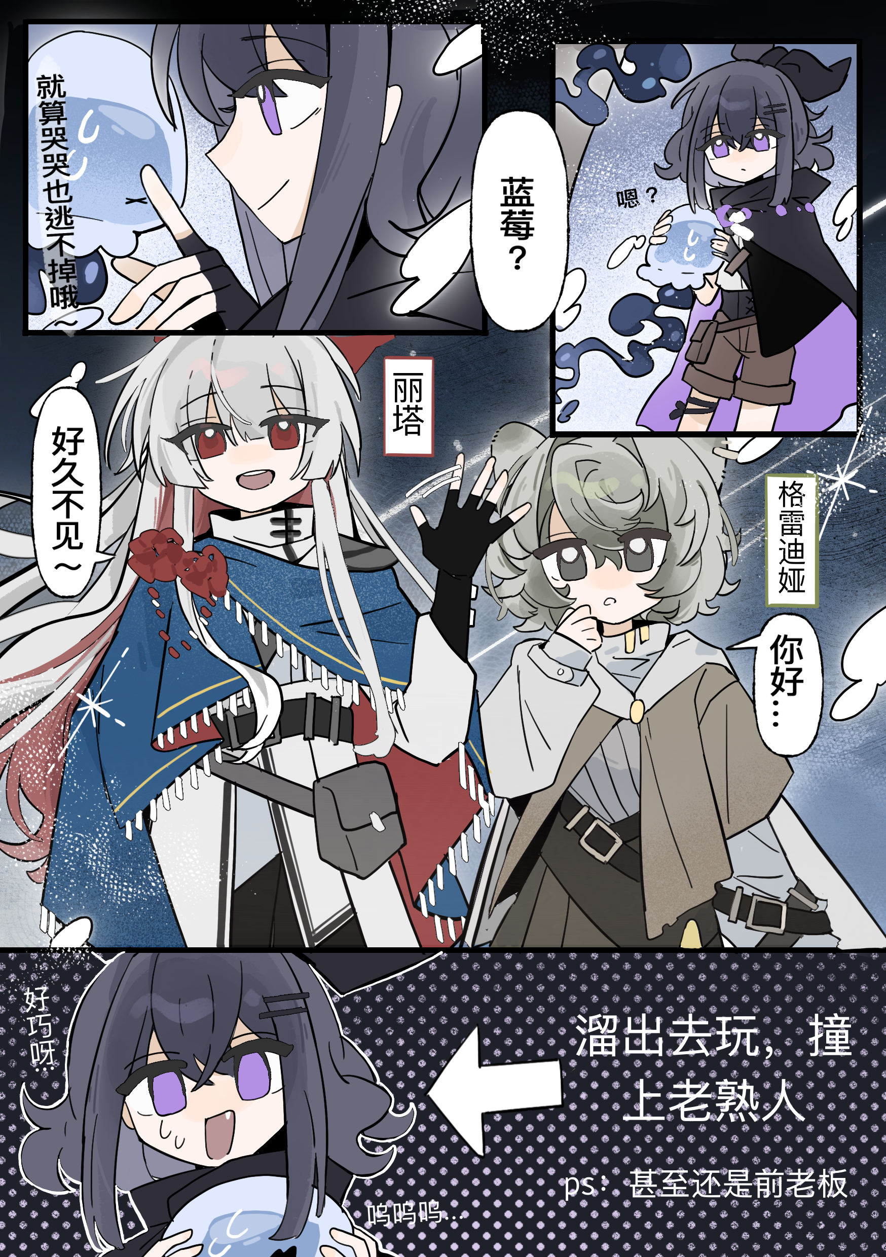 这是命运的邂逅吗? 指悄悄一个人溜出去玩撞上前老板这回事.jpg 你看这事闹的…. (说真的,下次不要再折磨自己给漫画上色了啊啊啊啊….)