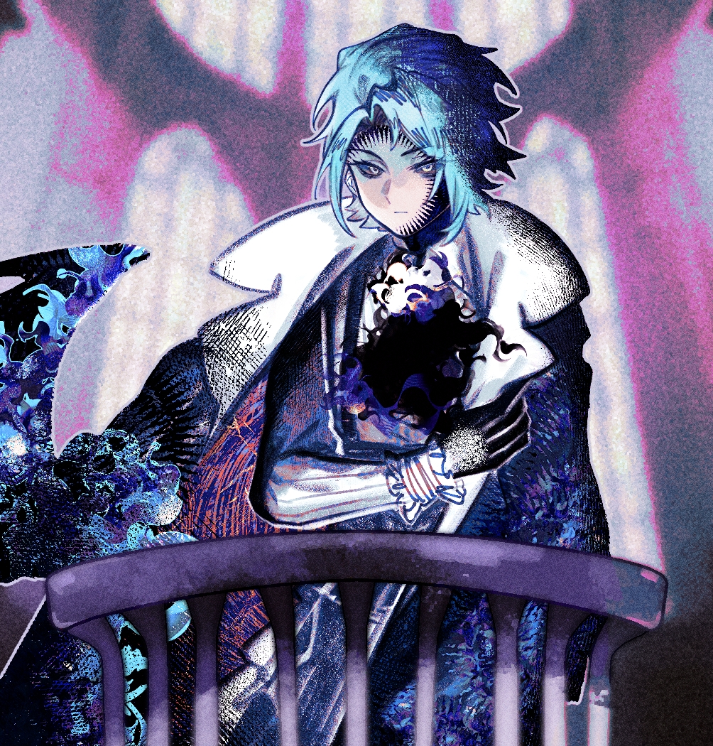 (他一言不发,只是静静地站在那里)