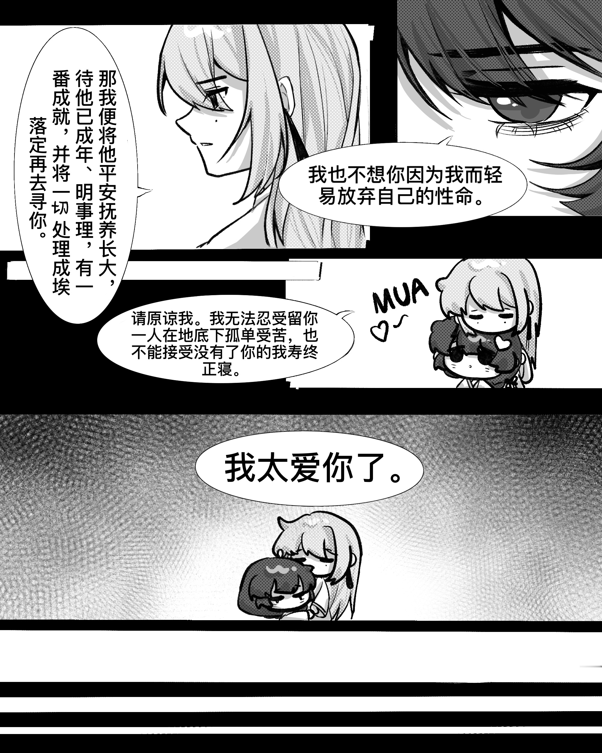 其实这个结局我从设角卡时就已经在想了,想给他们he但是思来想去发现好像只有这一条路可以走,除此以外其他路线都是be了,于是善良的亲妈毅然决然地给了he TAT