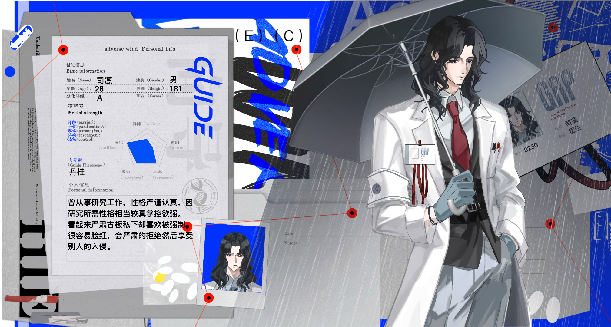曾从事研究工作,性格严谨认真,掌控欲强。看起来严肃古板却有喜欢被强制的内核。